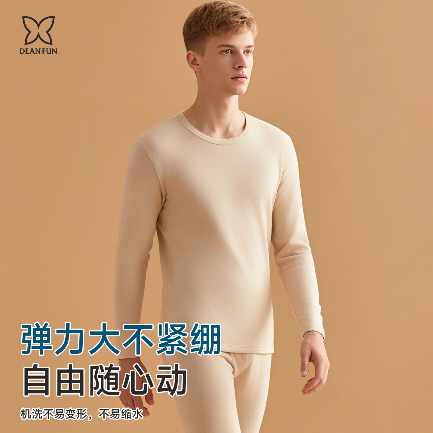 加厚双面绒套装 蝶安芬男女情侣保暖内衣A类彩棉秋冬秋衣秋裤 大码