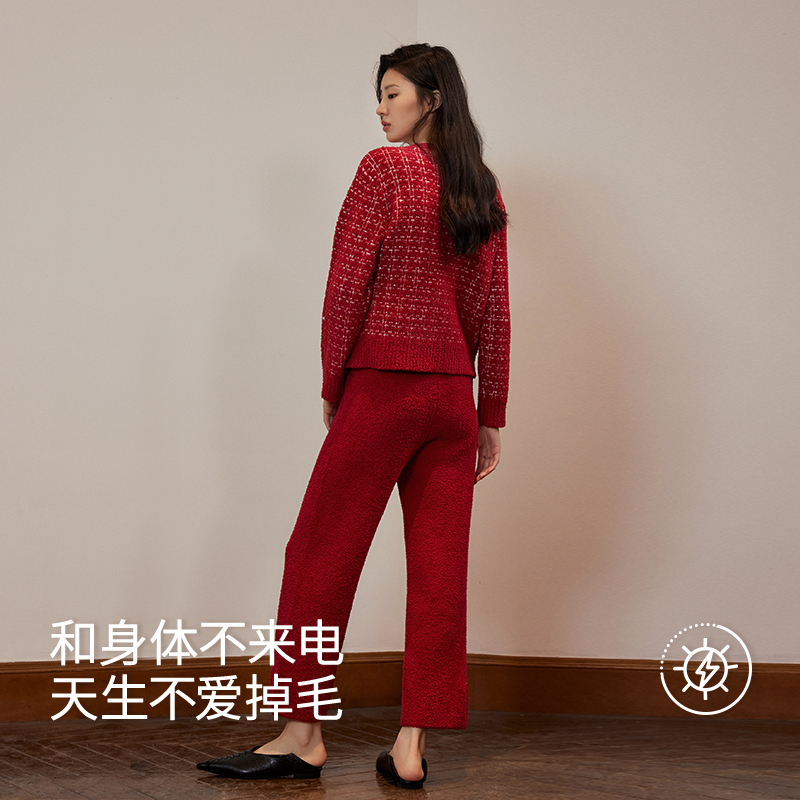 秋冬季 ubras流光家居服女士缎面睡衣长袖 男款 可外穿情侣套装 长裤