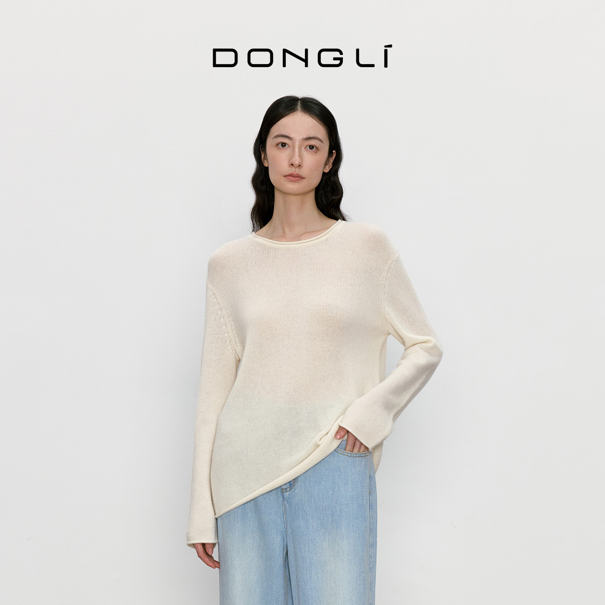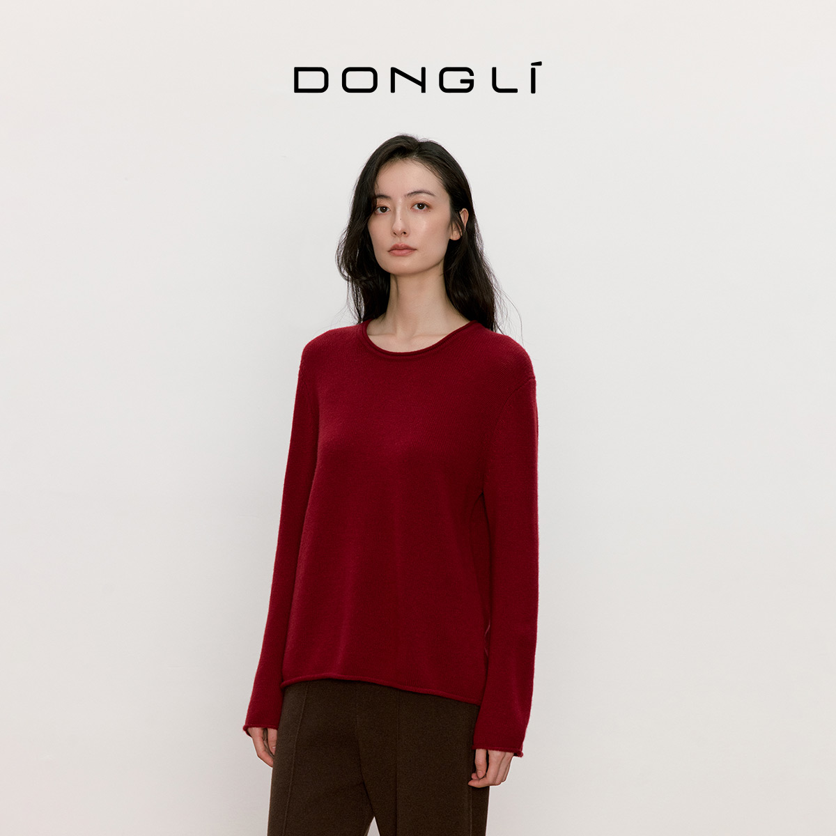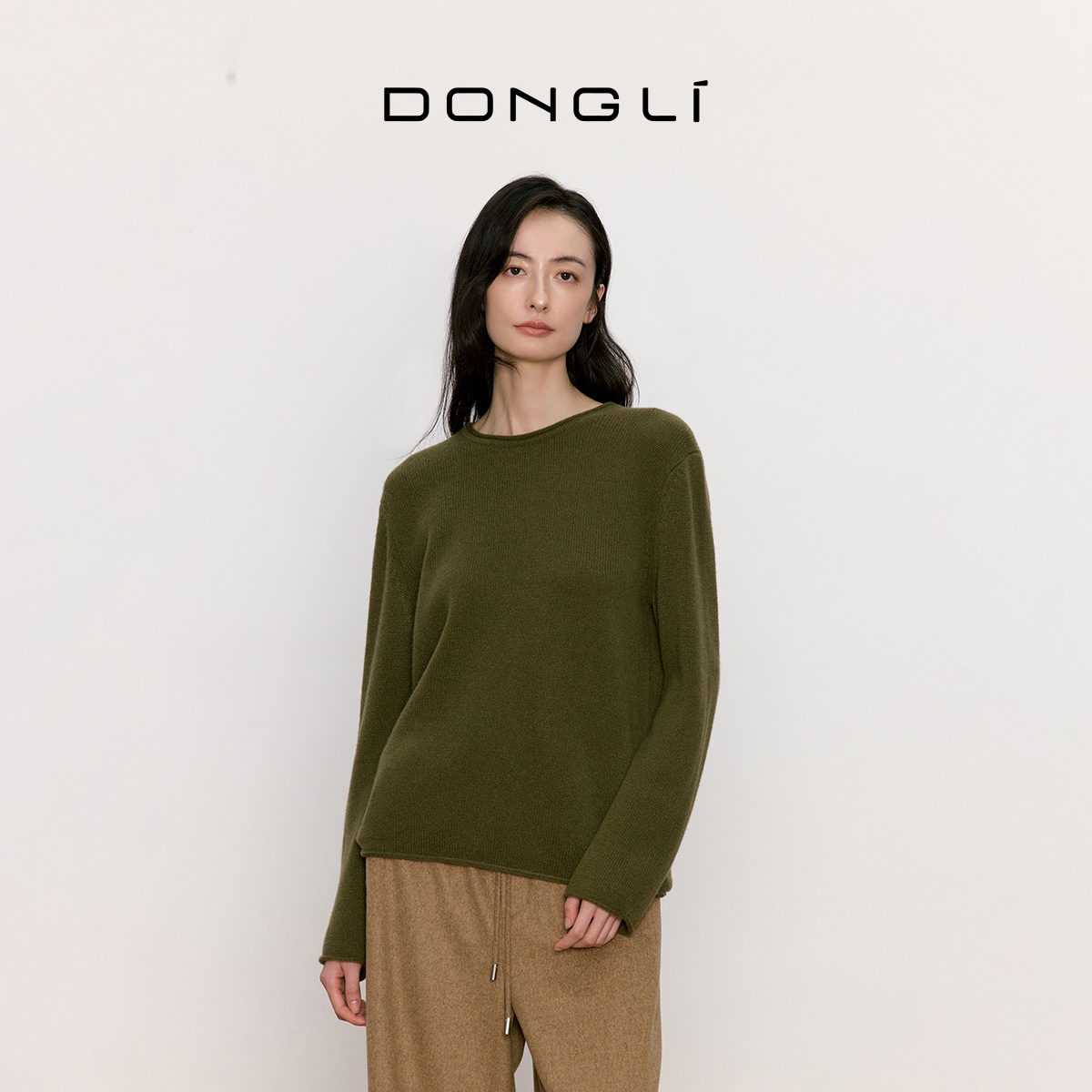 保暖针织套衫 东黎山羊绒 打底衫 女士秋冬圆领宽松长袖 5366 素雅衫