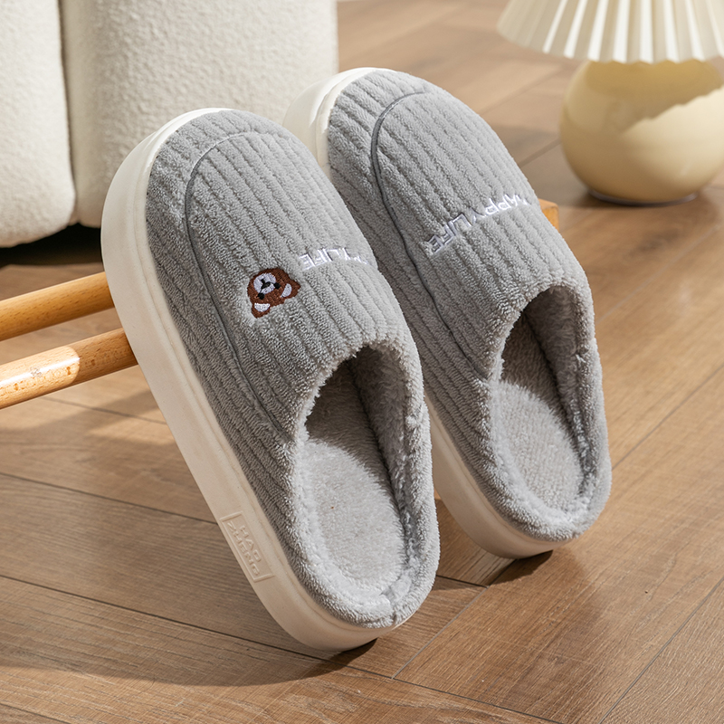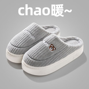 家居保暖厚底防滑2025新款 男士 家用情侣踩屎感女 秋冬季 毛绒棉拖鞋