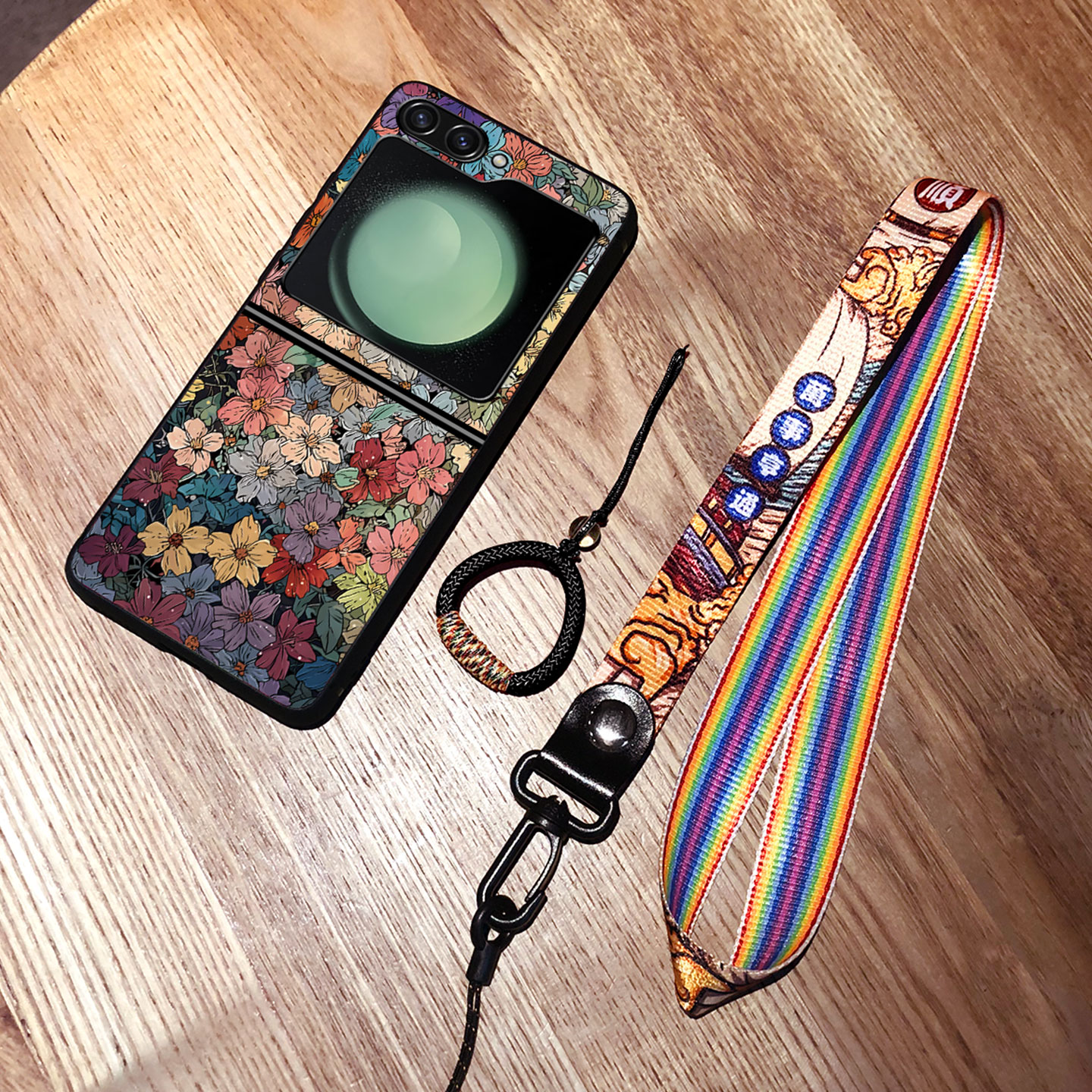 适用三星zflip5手机壳新款 ZFlip4保护套国风w24小折叠屏高级感zflip6五彩花男女25挂绳网红潮情侣指环 Galaxy