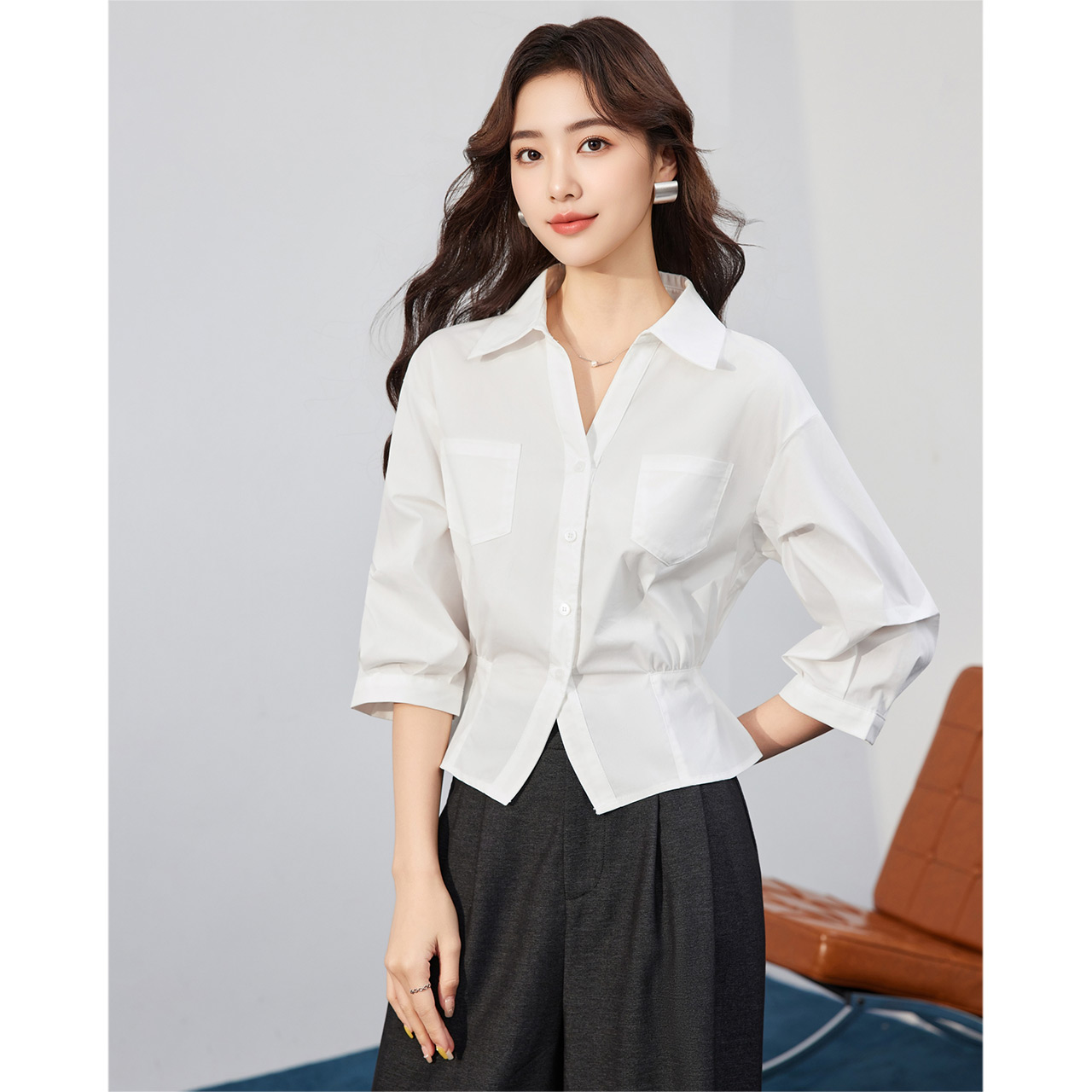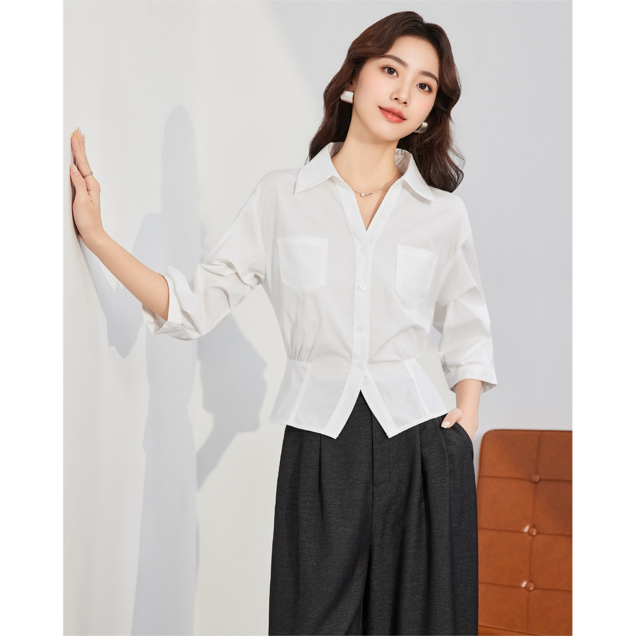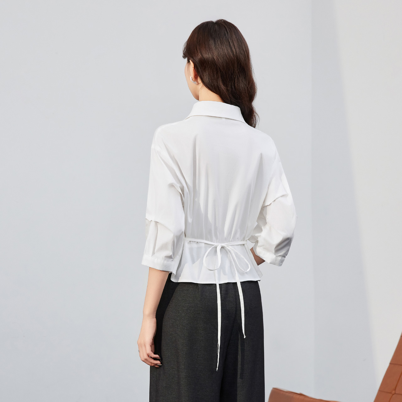 亚麻莱赛尔极简V领慵感混纺套头衬衫 Unvesno
