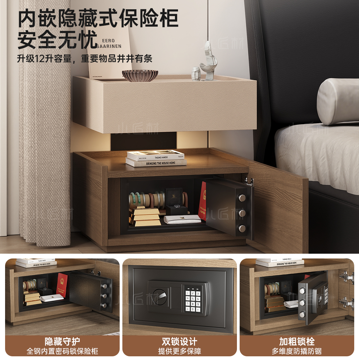 实木床头柜家用卧室2025新款 轻奢高级感现代简约小型床边收纳柜子