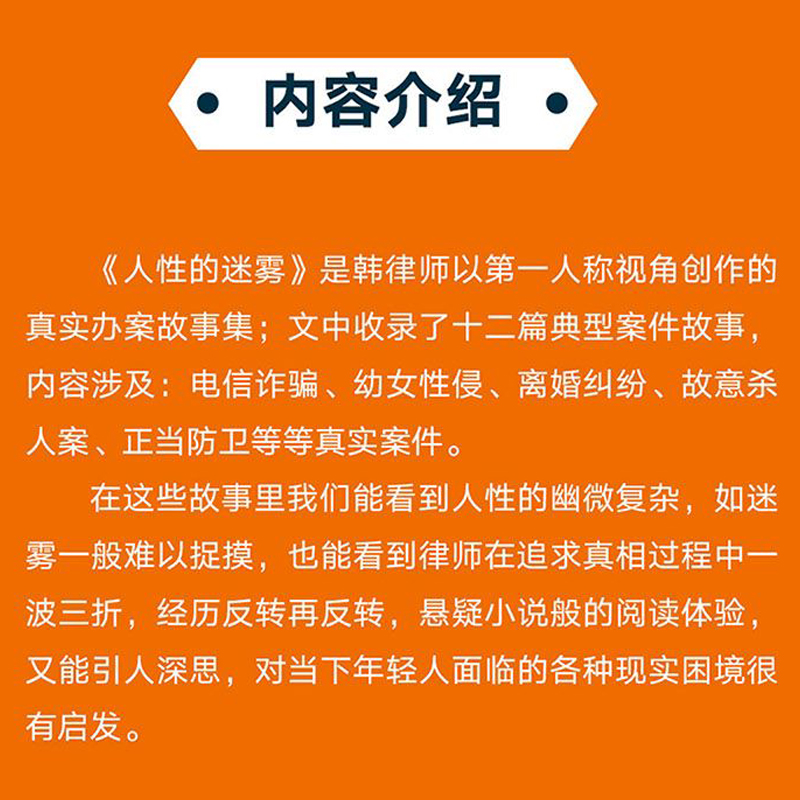 迷雾 韩冰著 百万粉丝追更律师老韩真实办案故事 一本直面人性 人性 探寻人性幽微突破认知局限 律师办案手记畅销书 官方正版