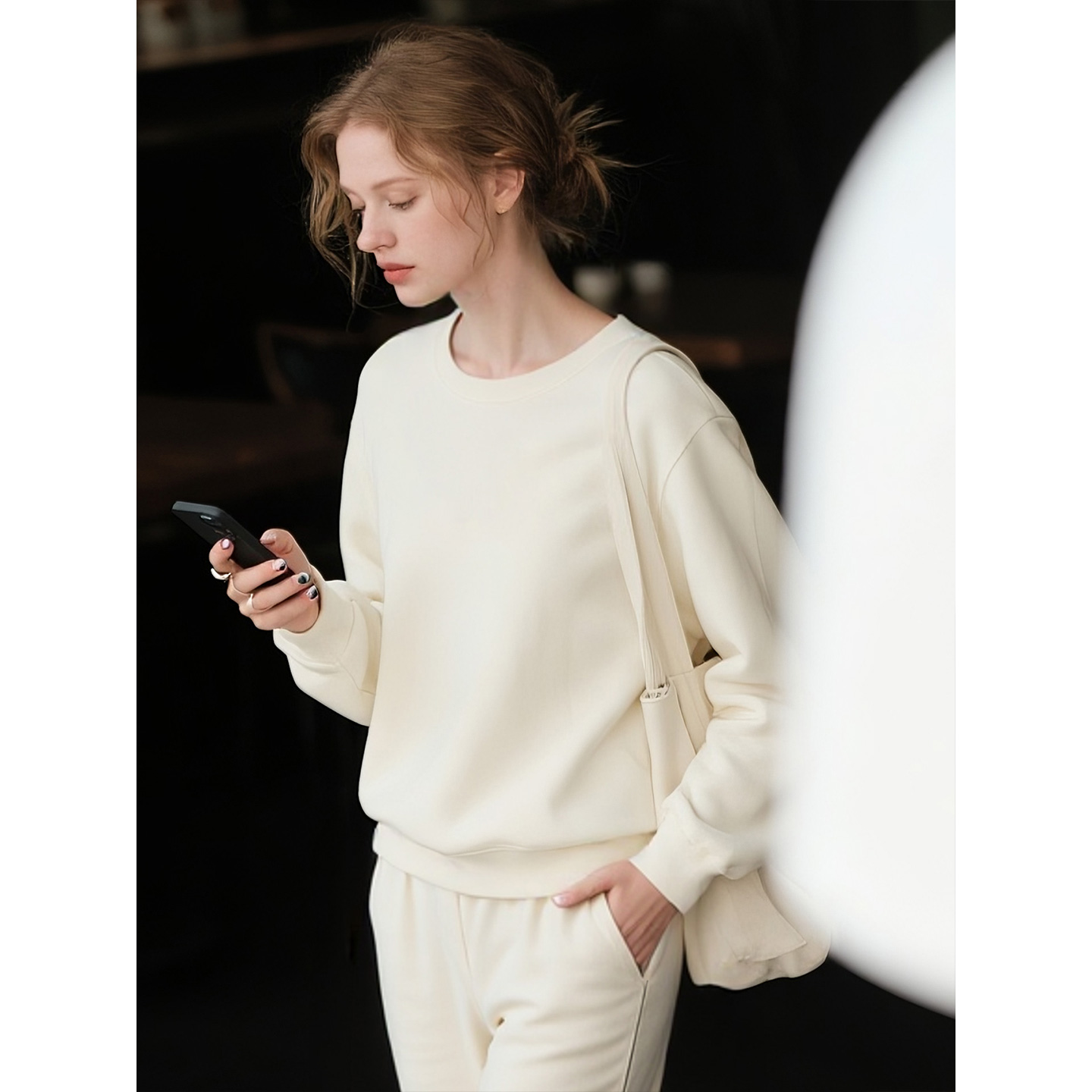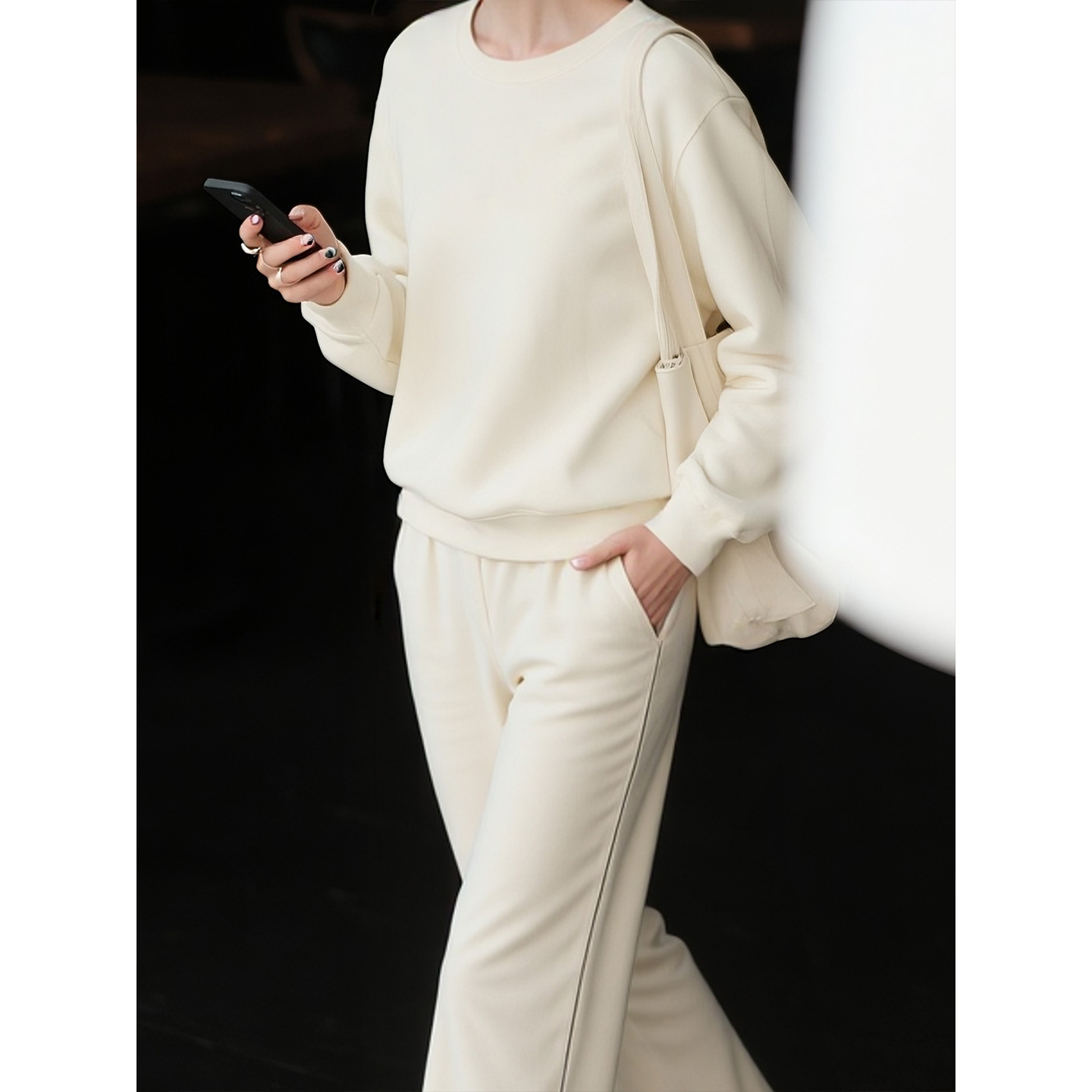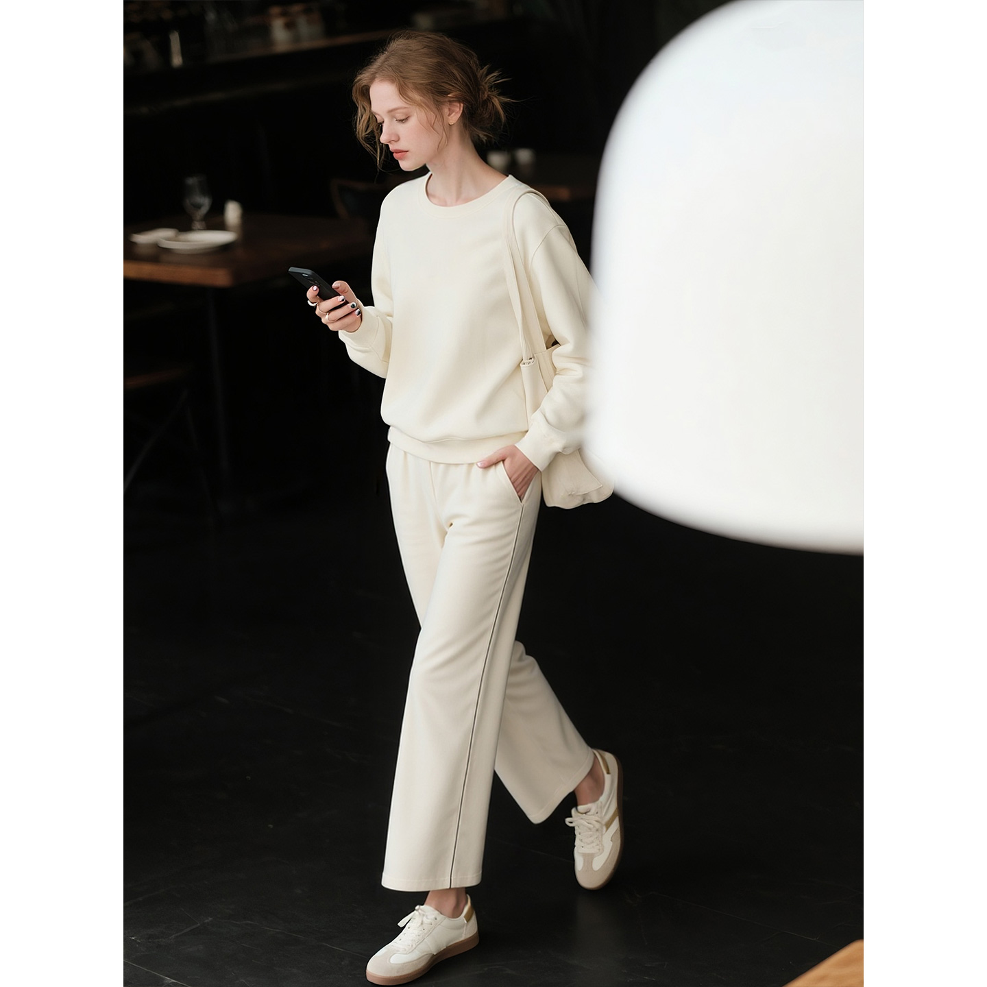 慵懒风polo领卫衣高腰直筒裤 新款 两件套 女2025年秋季 白色休闲套装