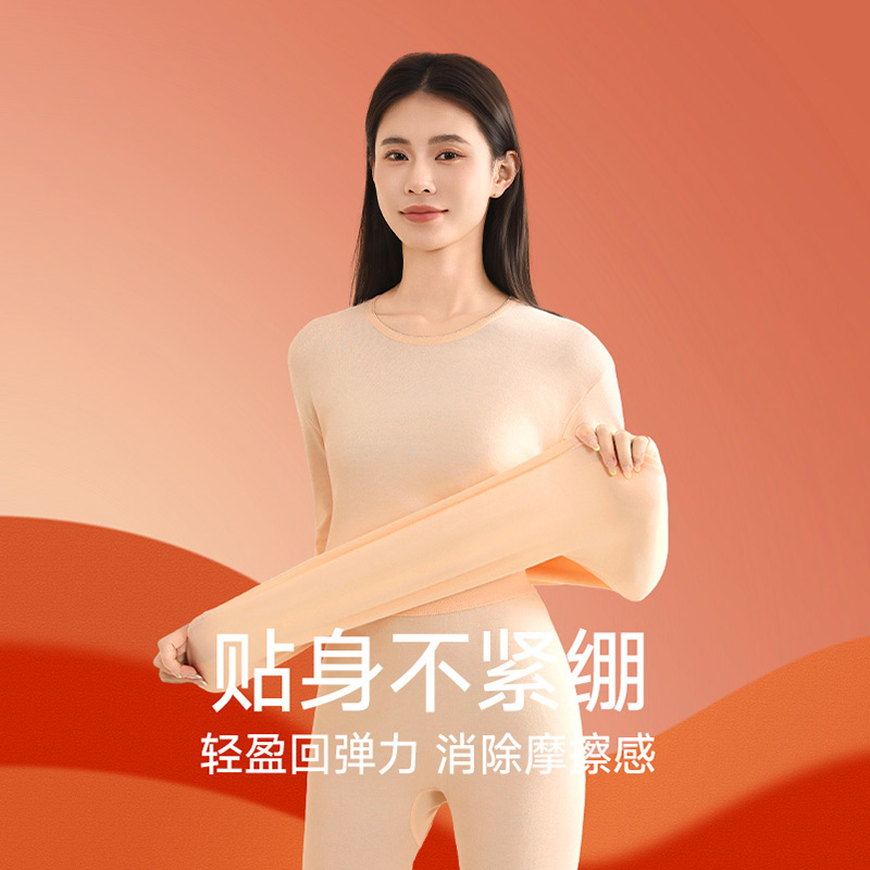 无痕加绒秋衣秋裤 女打底衫 冬上衣防寒内穿 保暖内衣套装 健丹鸟薄款