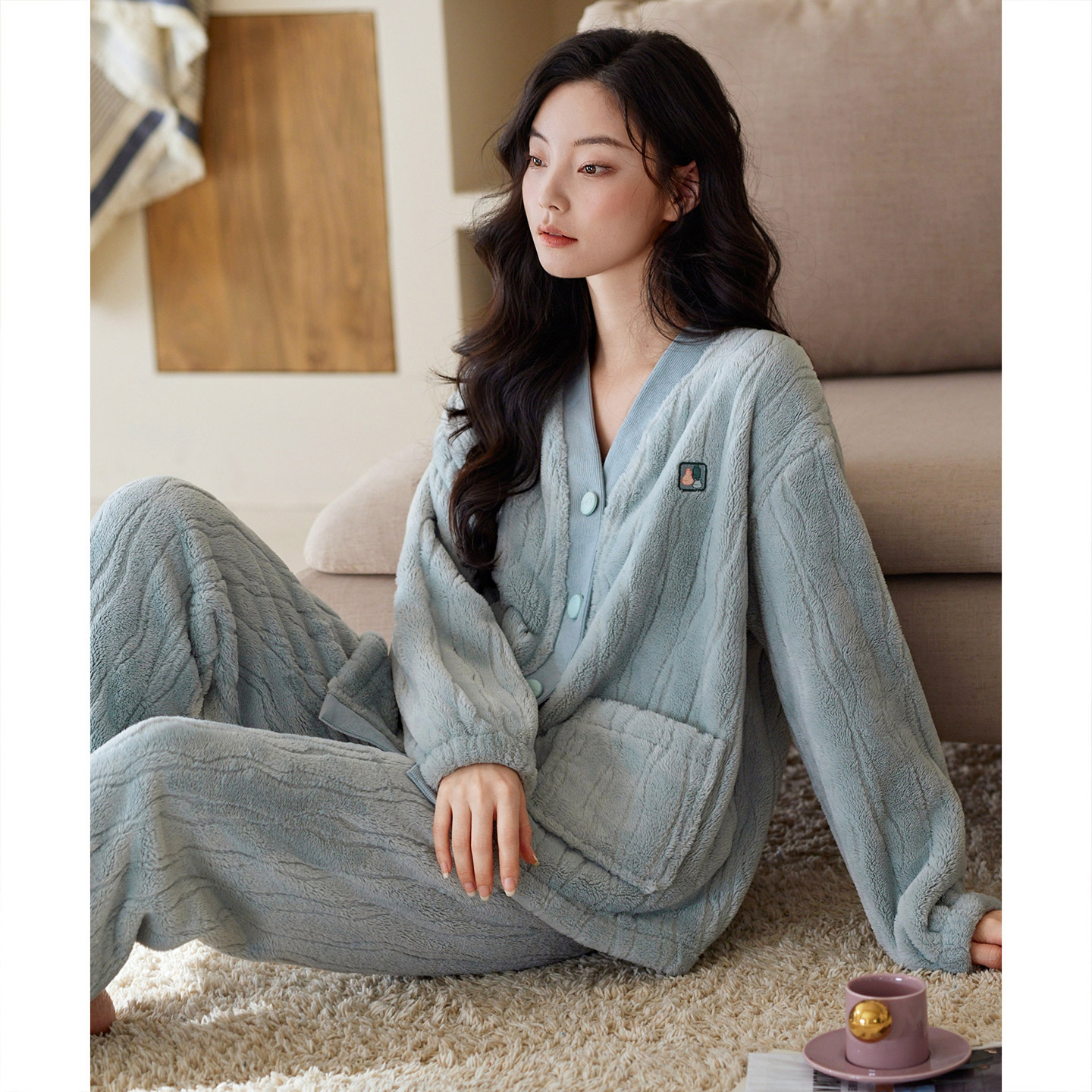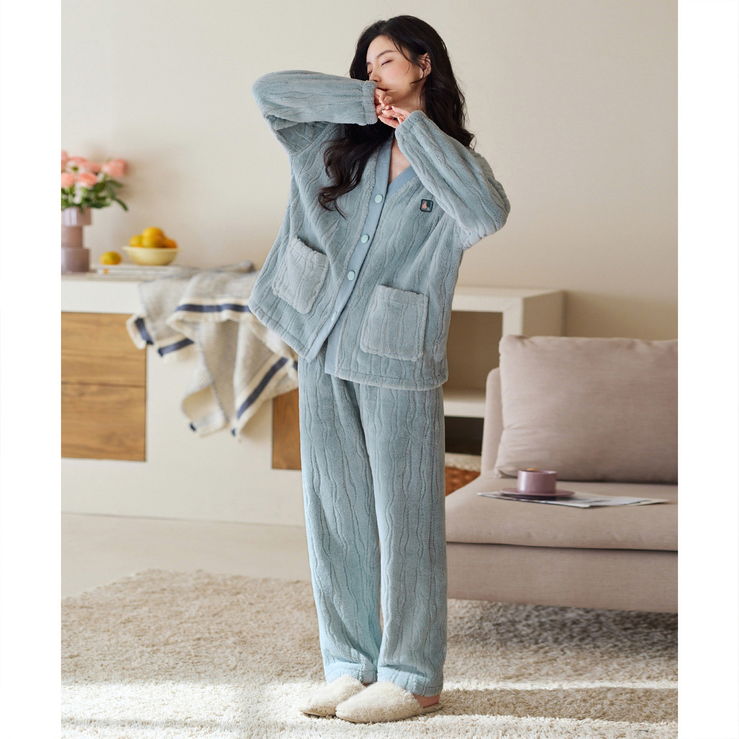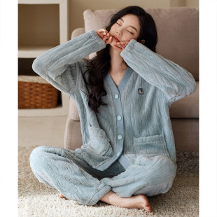 海岛绒可外穿家居服 简约薄款 睡衣女秋冬季 保暖珊瑚绒女士睡衣套装