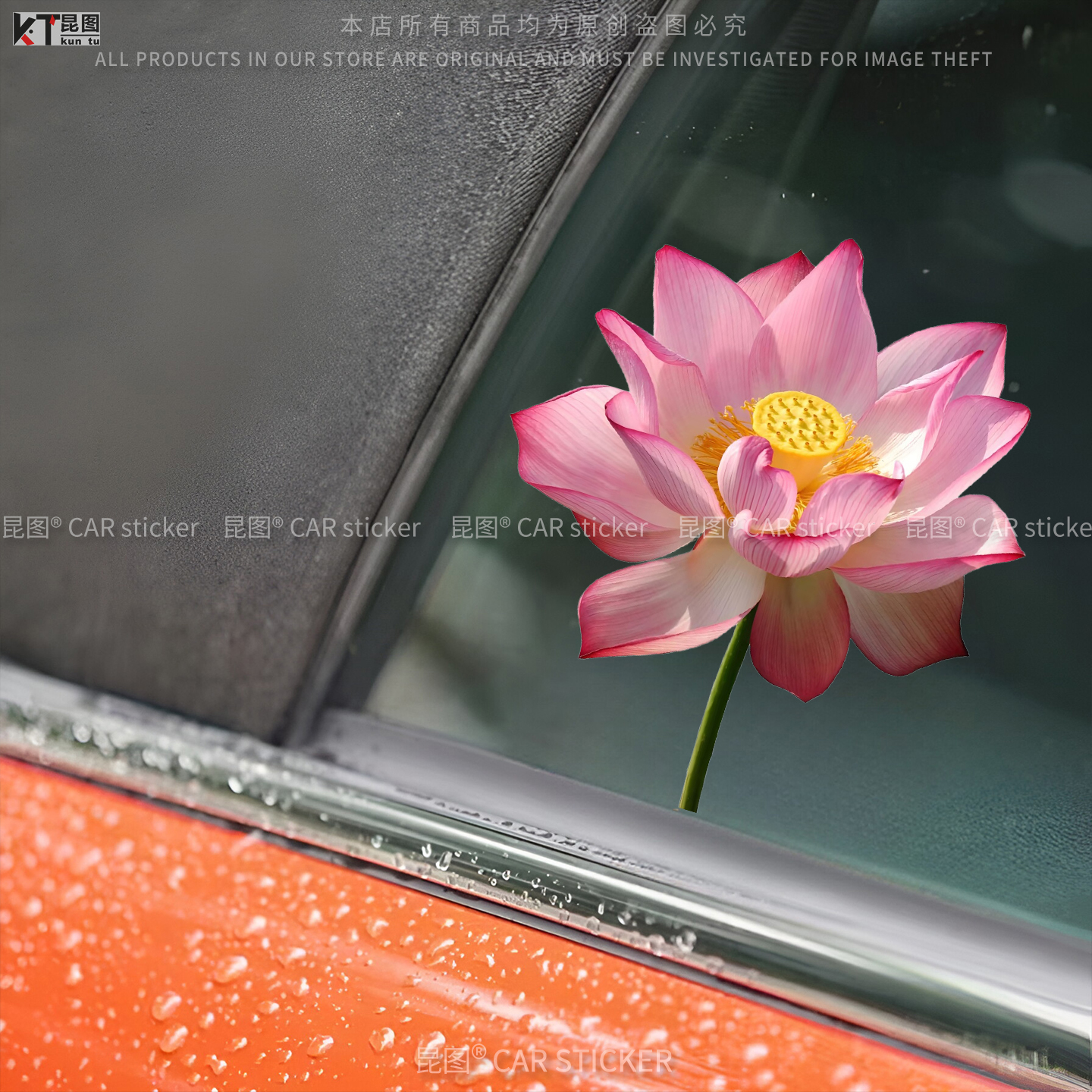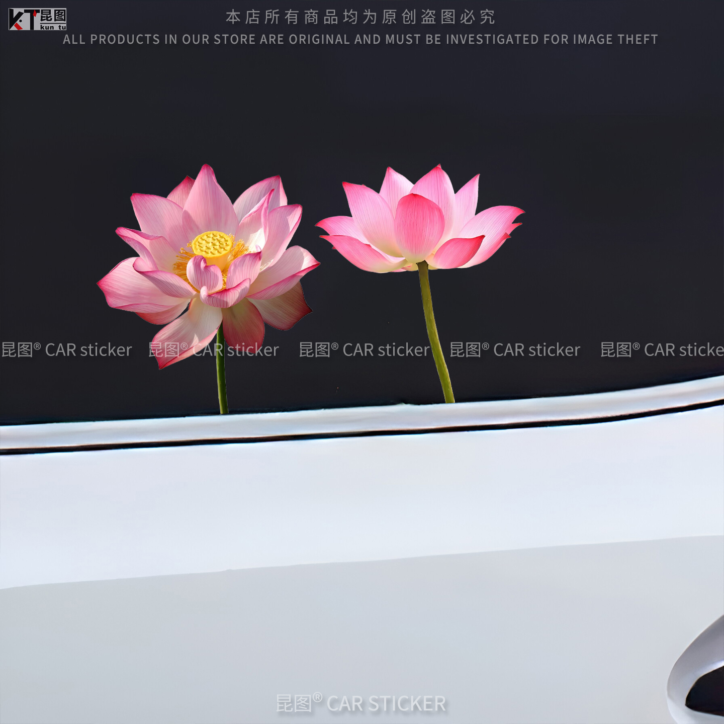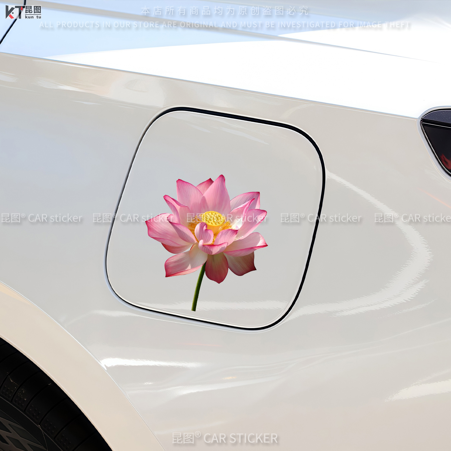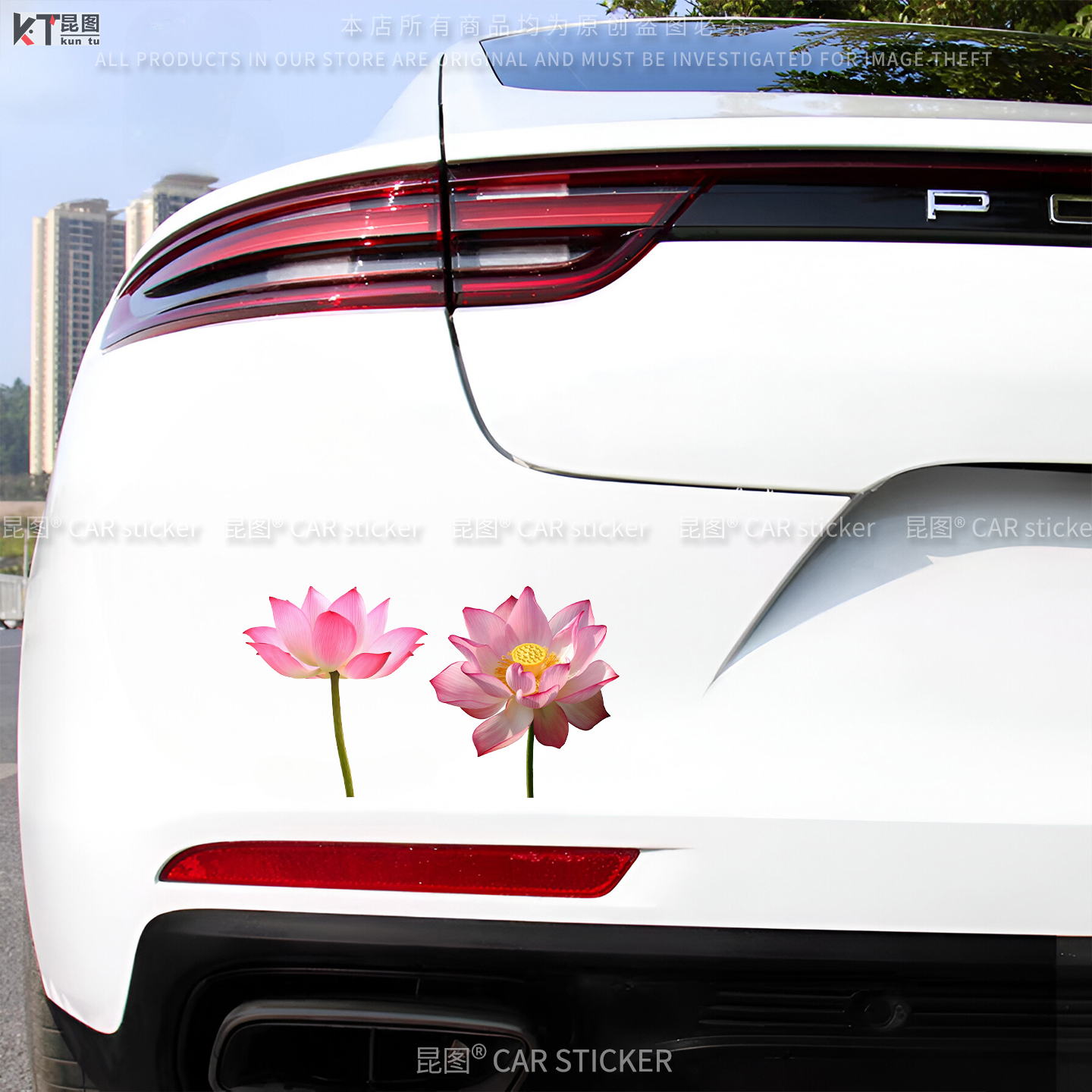 汽车划痕贴车身遮挡莲花贴纸保险杠油箱盖车贴3d立体荷花装 饰贴花