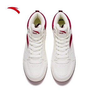 红色高帮板鞋 皮面防水休闲百搭鞋 秋季 青年男士 子 2025新款 安踏男鞋