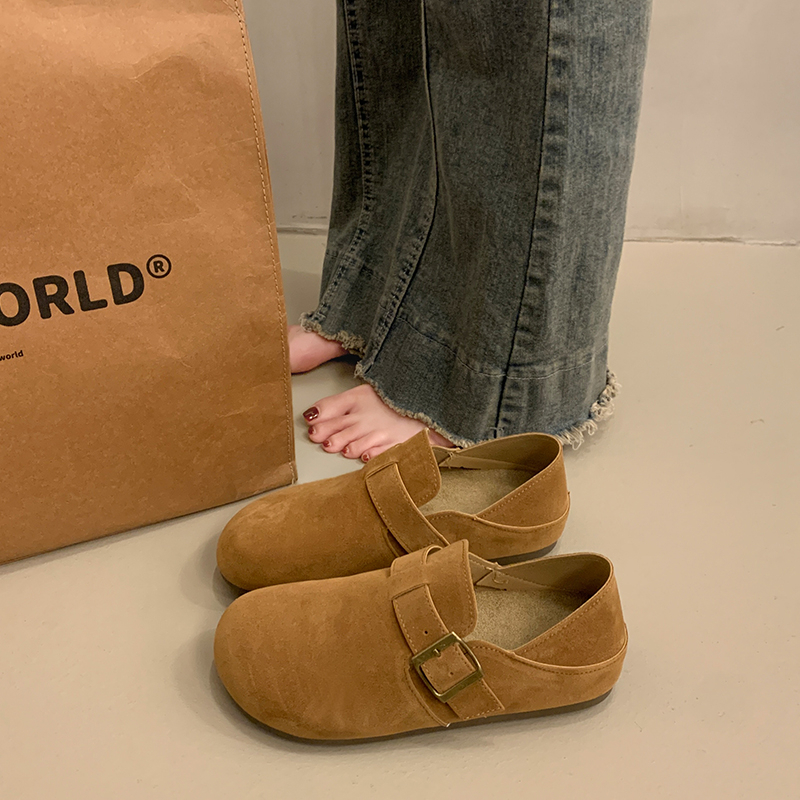 休闲豆豆乐福鞋 厚底复古全包勃肯鞋 一脚蹬博肯单鞋 新款 女2025秋季