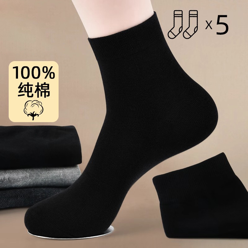 长袜黑色抗菌男袜 短袜春夏季 雅鹿袜子男士 中筒纯棉防臭吸汗薄款