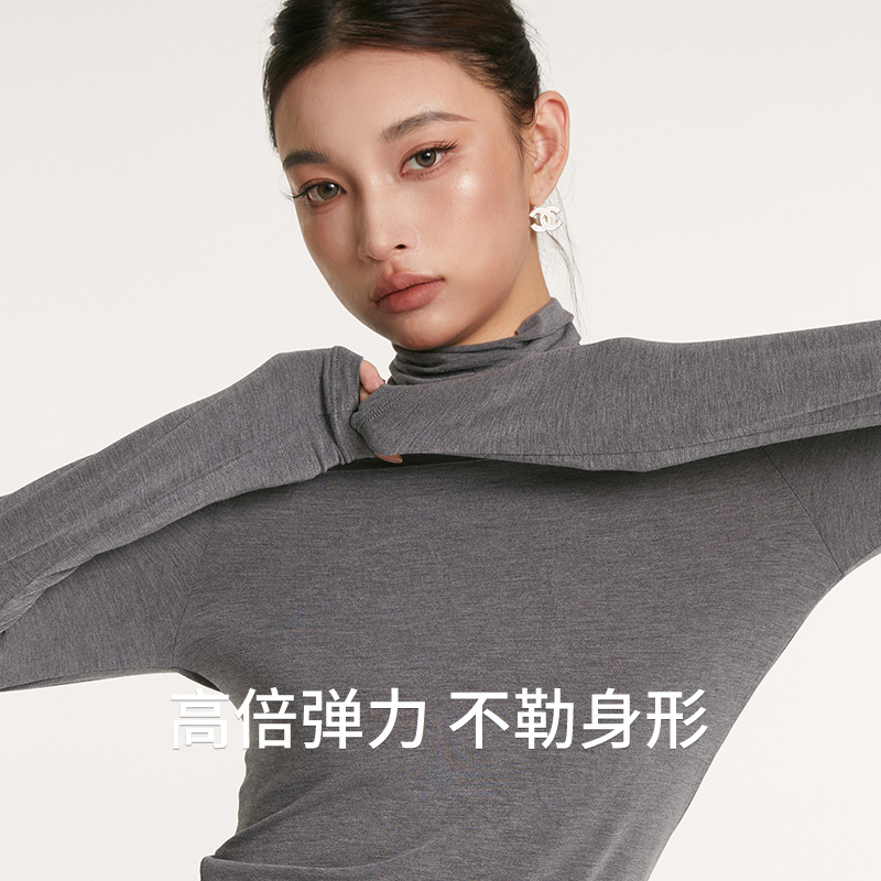蕉点女士肌底衣圆领打底内搭高领上衣轻薄暖热感衣长袖 保暖秋冬季