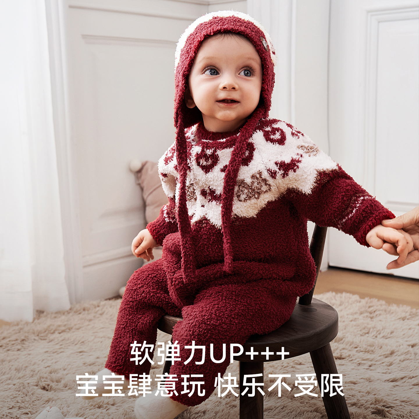 嫚熙婴儿连体衣牛油果半边绒外出衣服加绒保暖爬服 双11预售