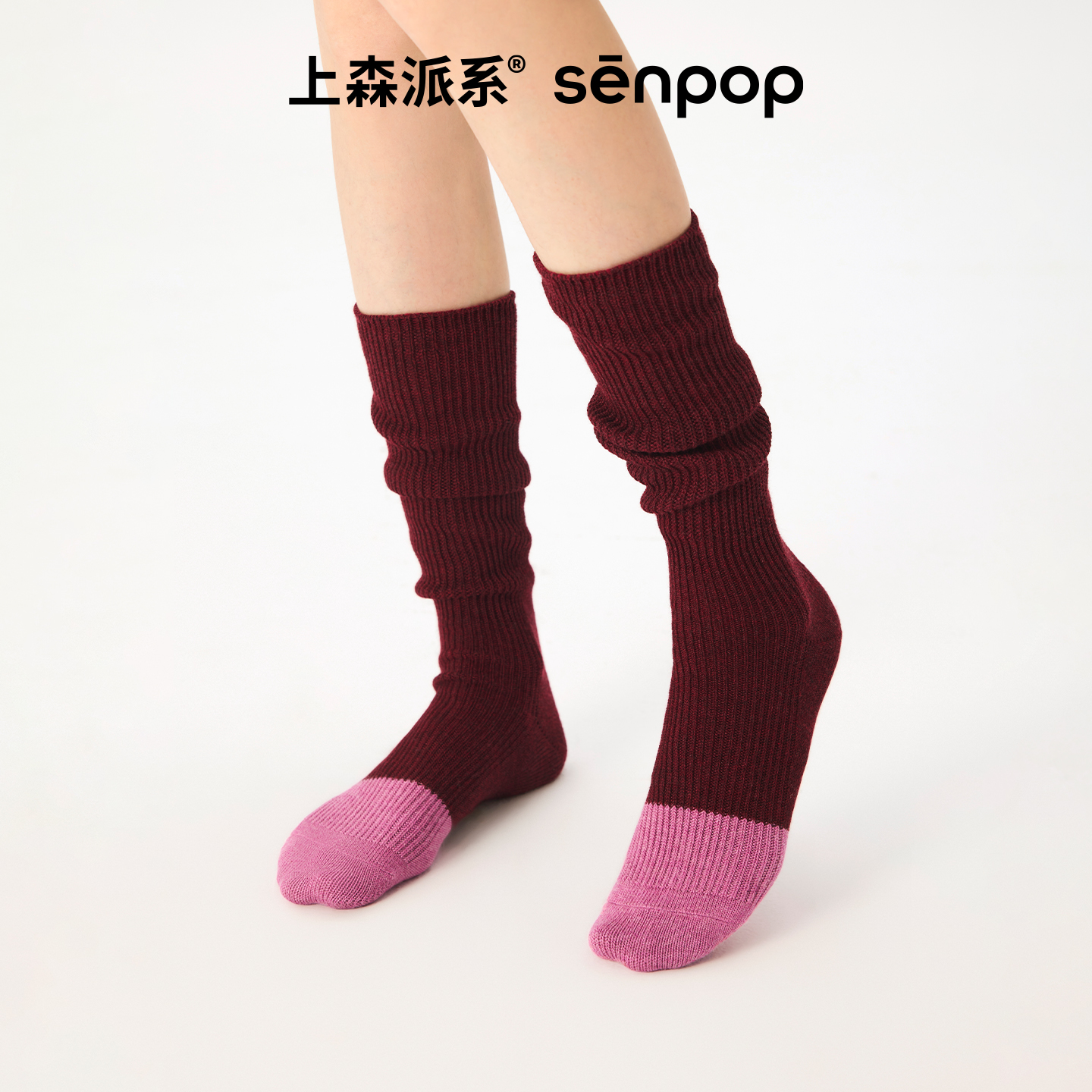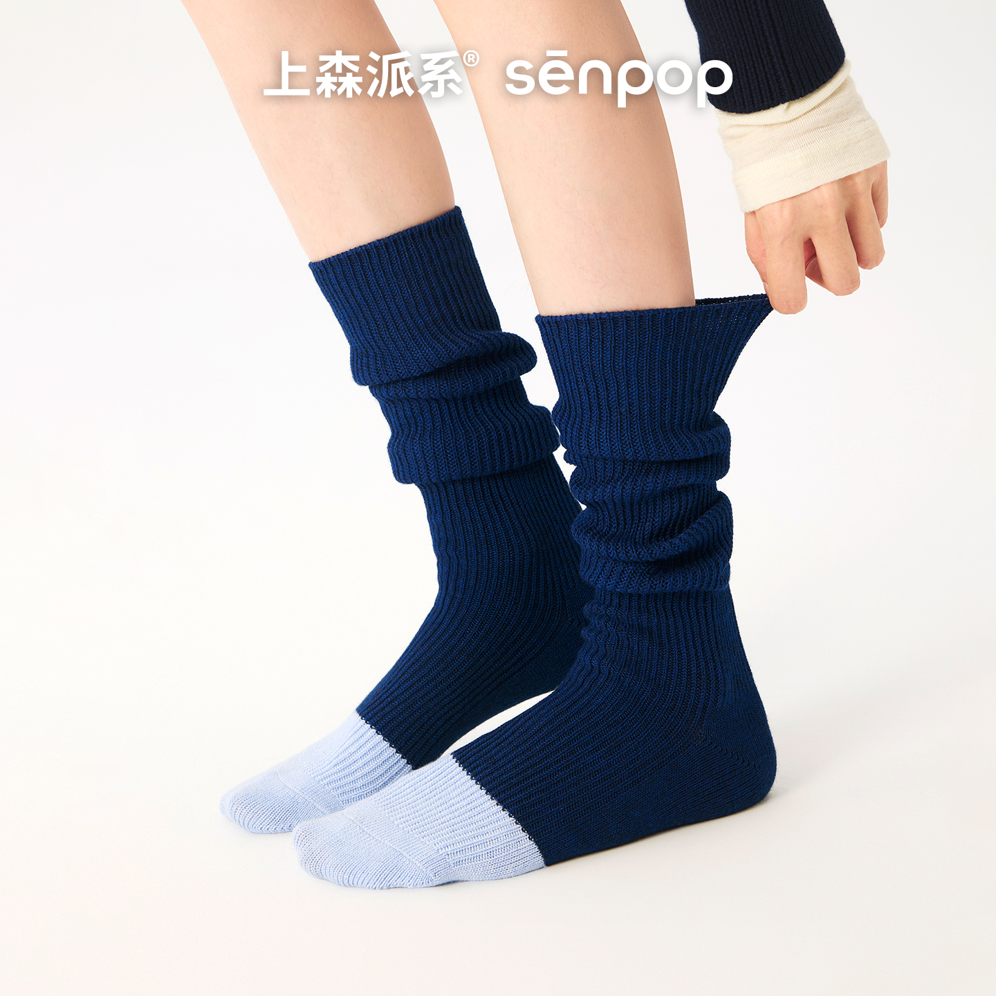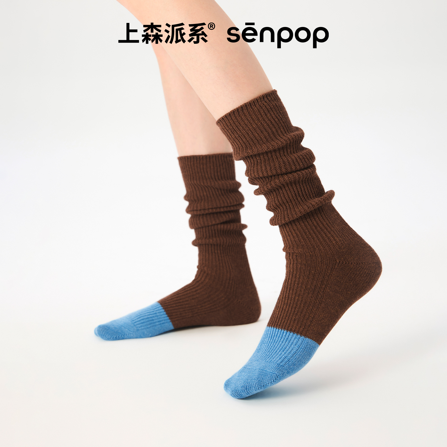 上森灰色堆堆袜羊毛中筒袜秋冬款 女袜子小腿袜拼色长袜2025新款