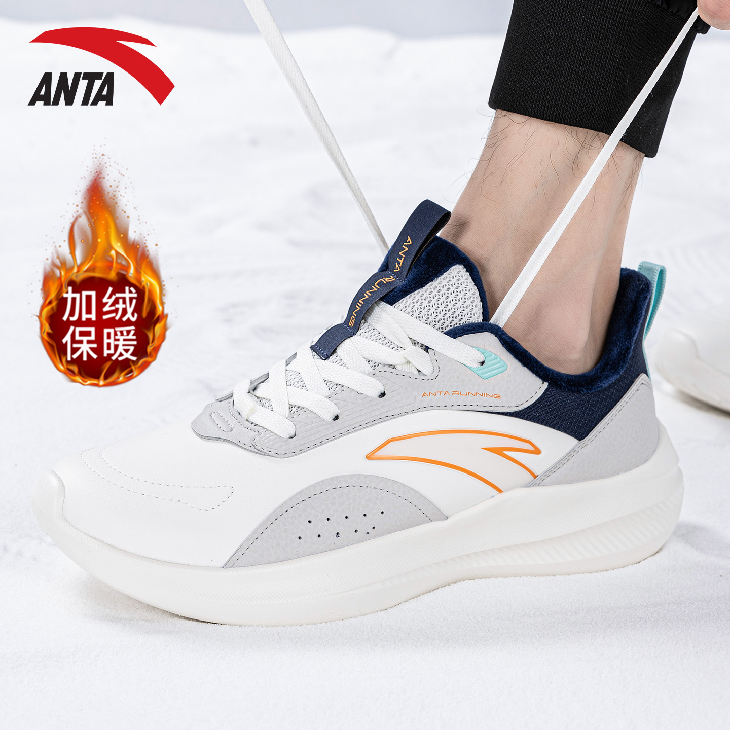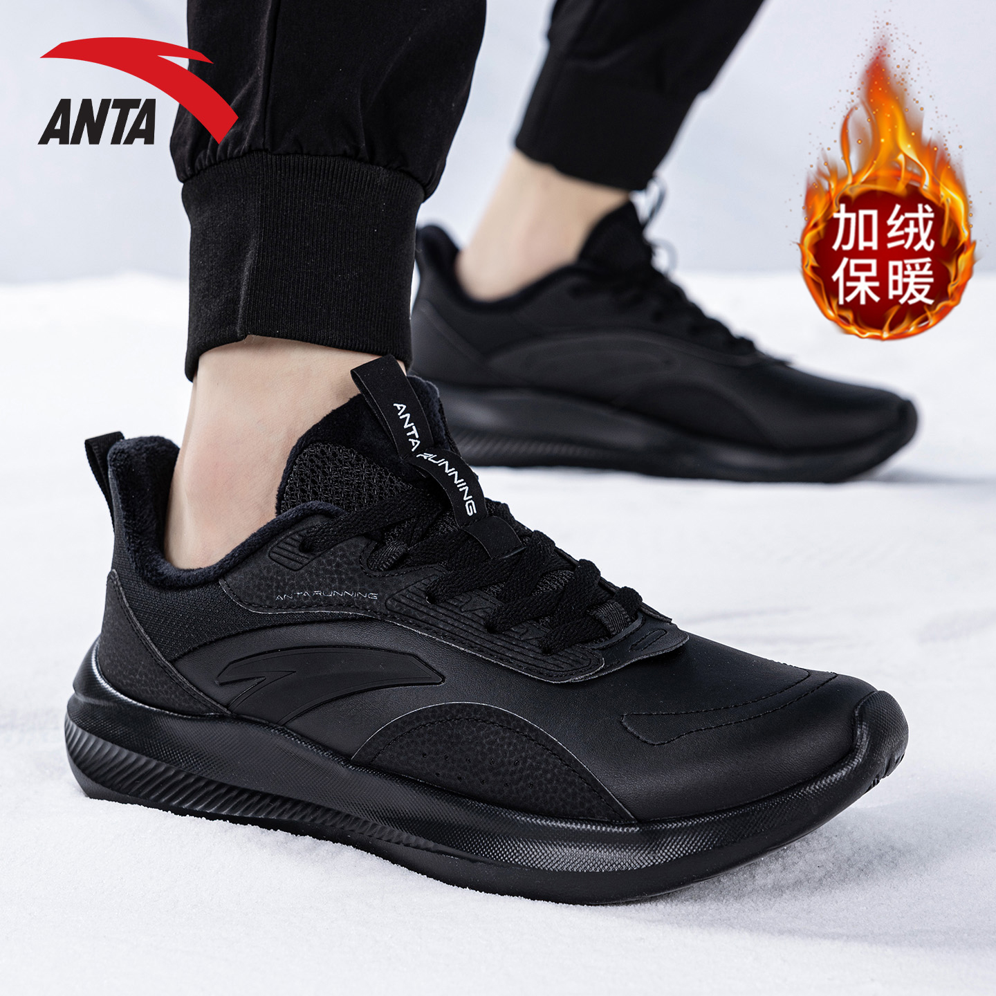 秋冬男款 2025新款 皮面加绒休闲鞋 棉鞋 男 安踏男鞋 软底运动鞋 跑步鞋