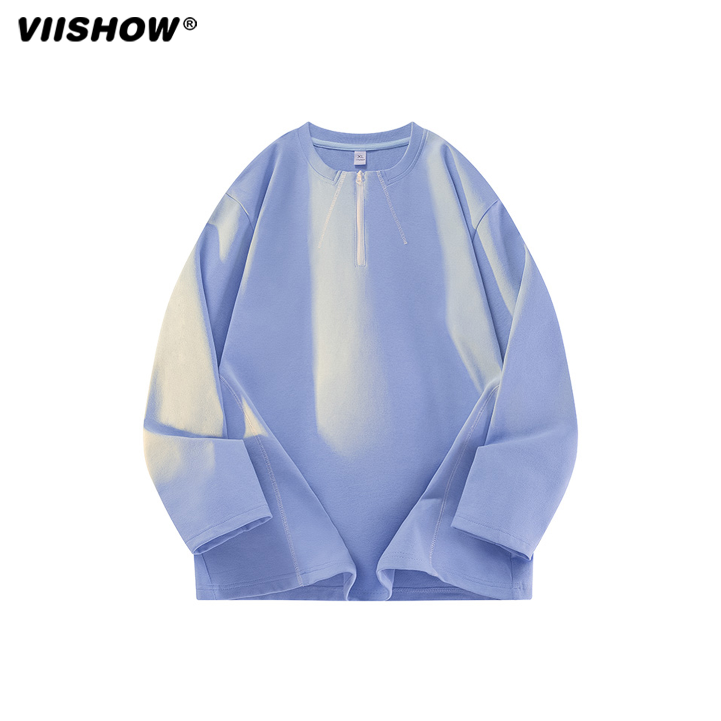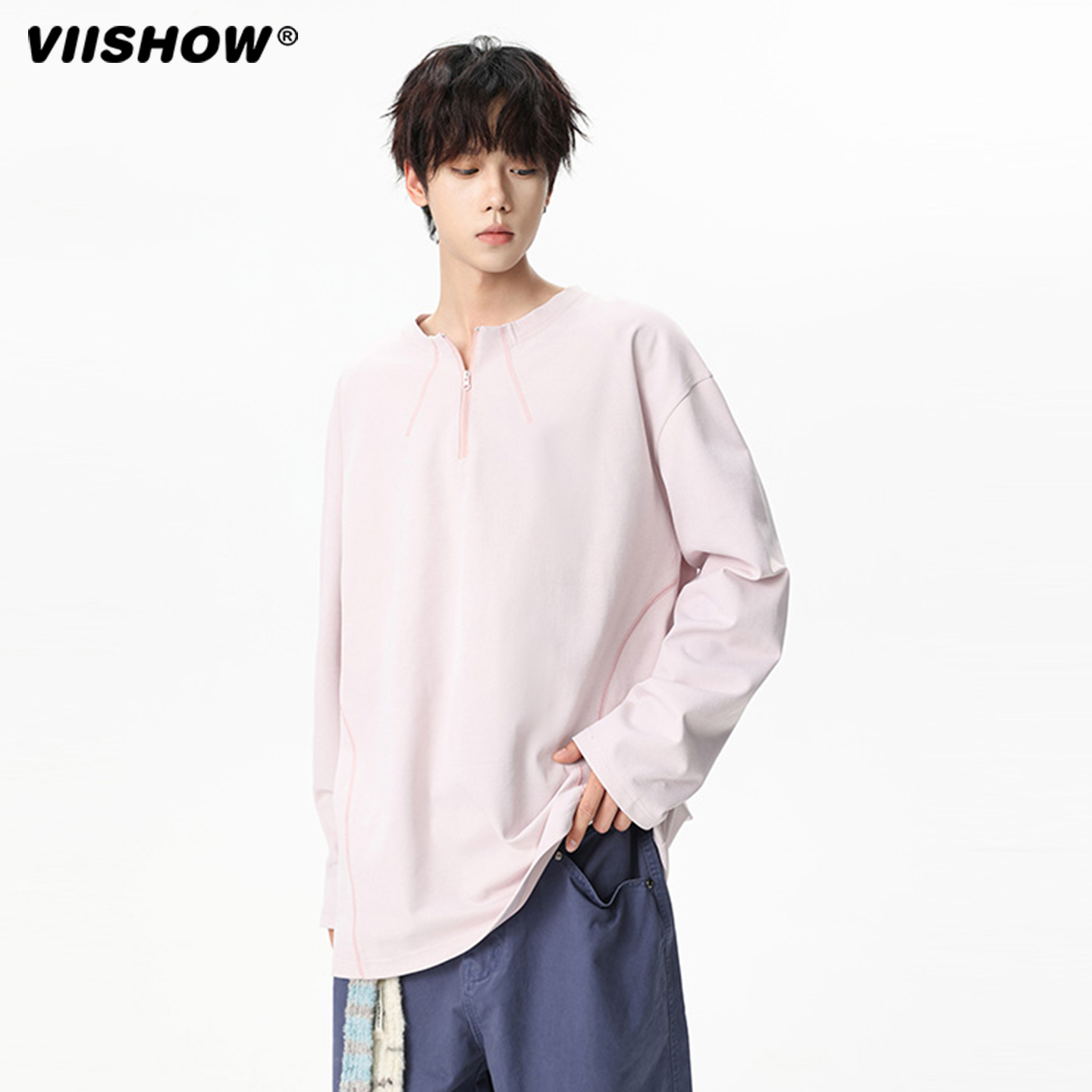 宽松打底上衣 男落肩袖 VIISHOW半拉链圆领T恤男秋季 简约套头体恤衫