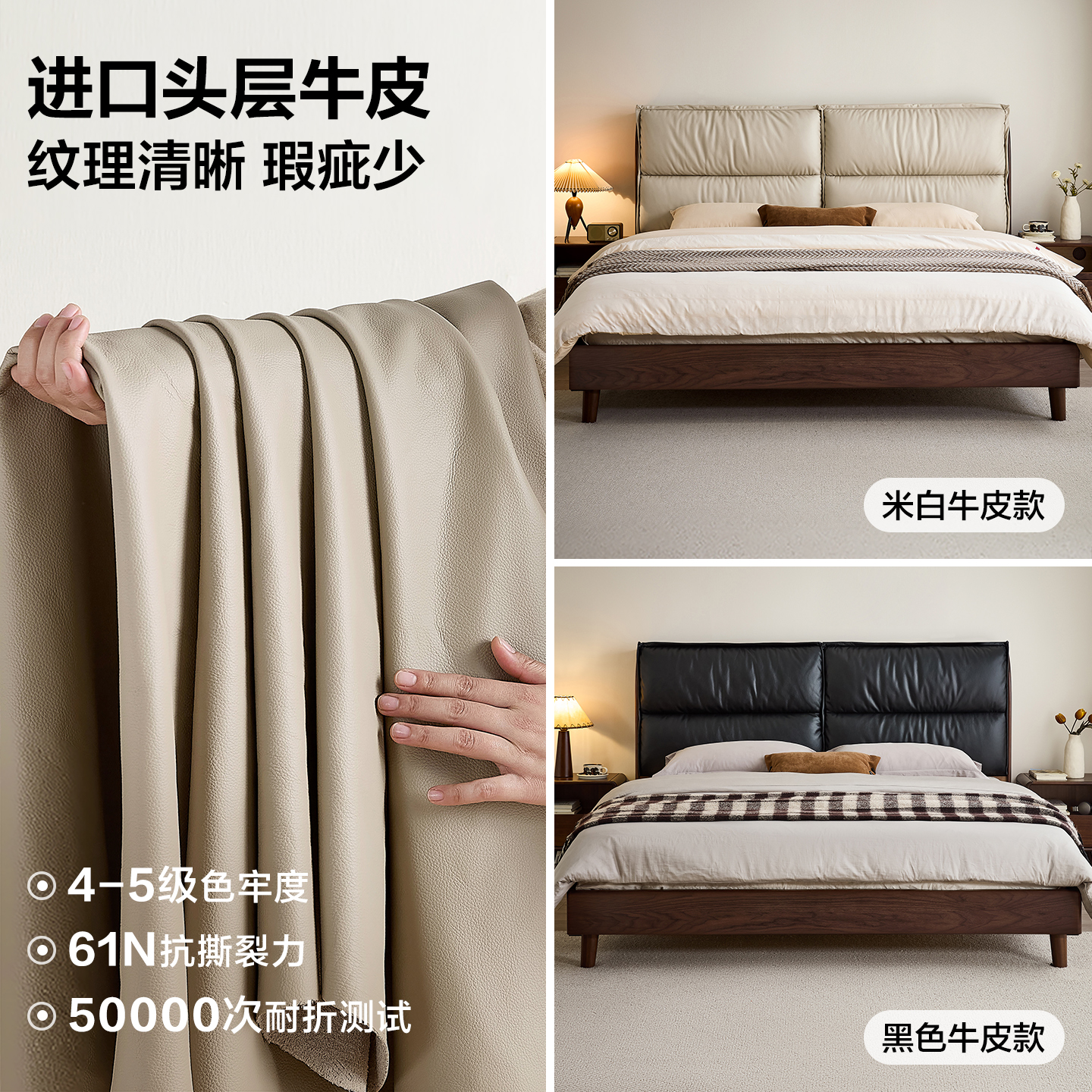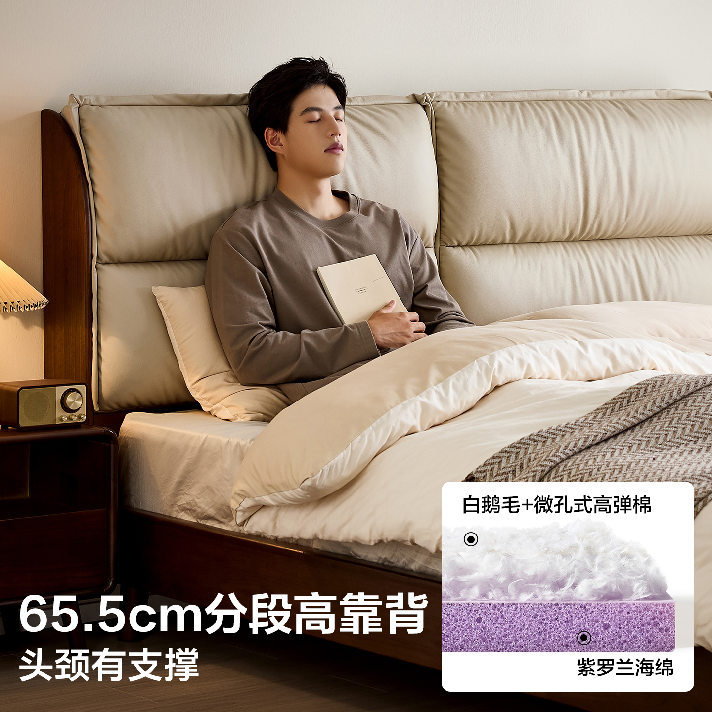 全友家居原木风黑胡桃木1米8双人实木床2025新款 1.5米单人软靠床