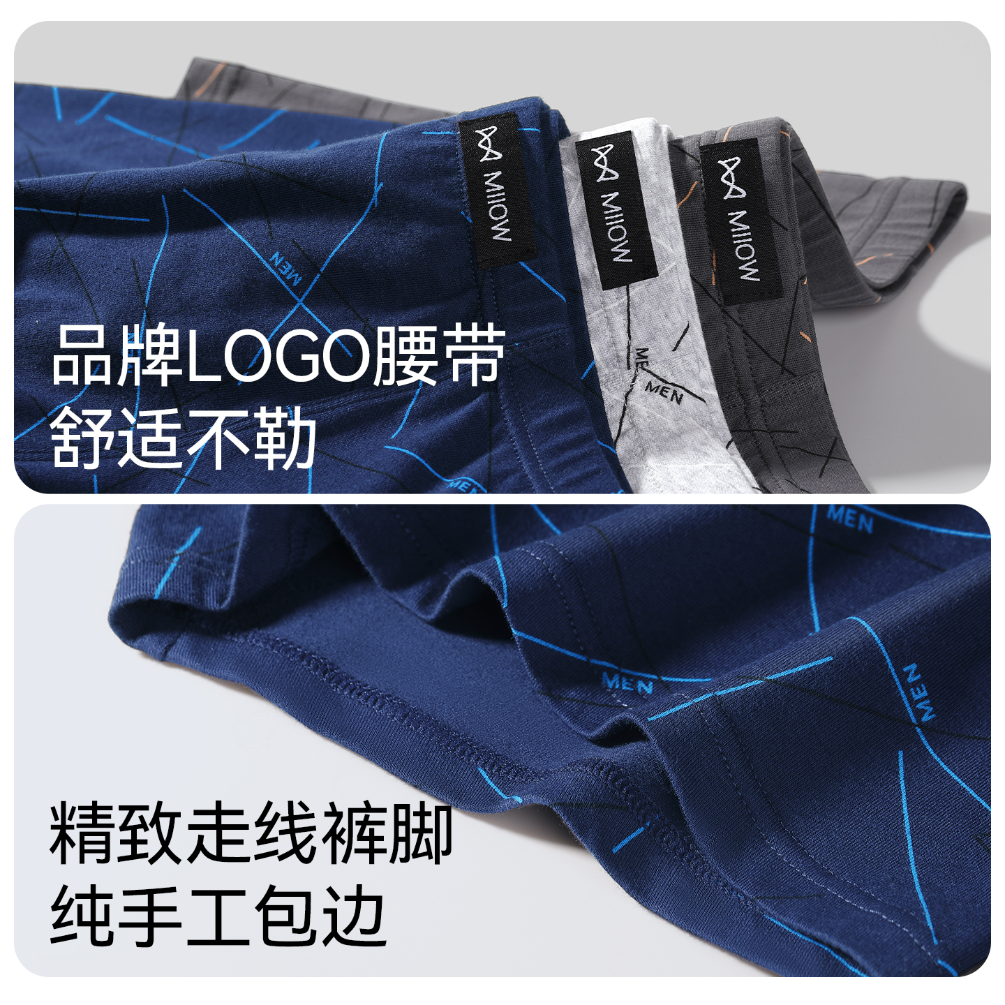 新疆棉抗菌裆全棉透气男生平角裤 字母织带新款 内裤 ubras纯棉男士
