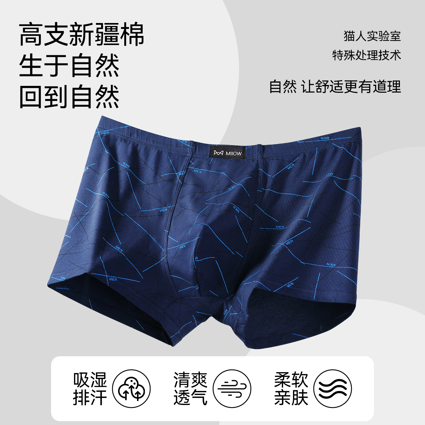 衩男款 猫人男士 防阴囊抗菌潮湿男生平角短裤 纯棉四角2025新款 内裤