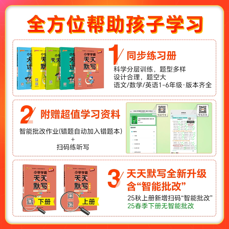 2025小学学霸天天计算默写一二三四五六年级上册下册语文数学英语练习册人教版 pass绿卡图书口算题卡默写能手小达人同步训练天天练