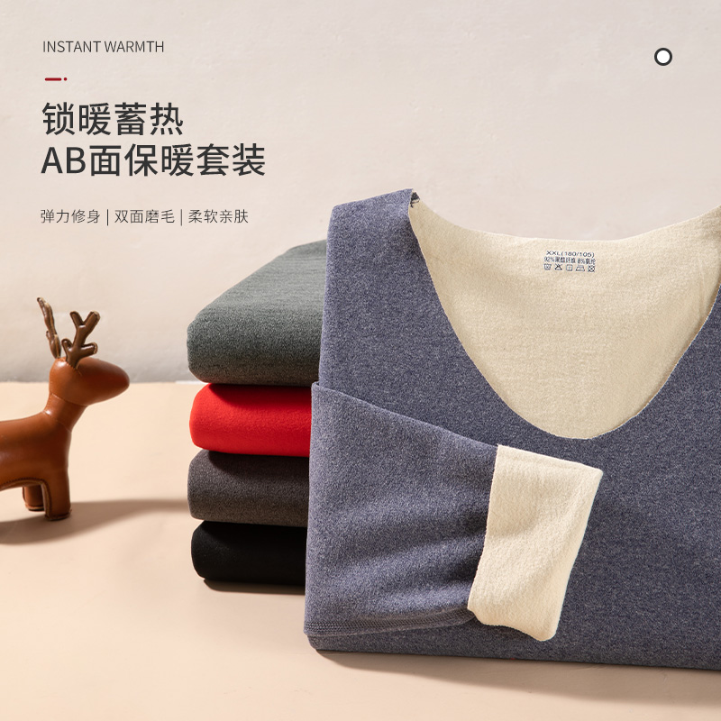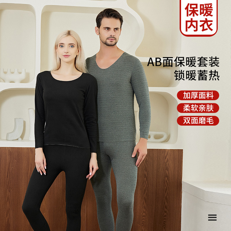 打底衣裤 蓄热男女士秋冬保暖秋衣秋裤 高弹修身 茵可可情侣保暖套装