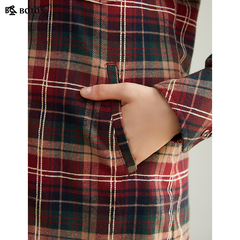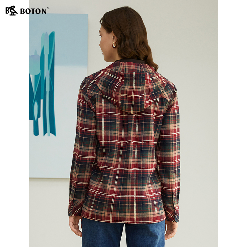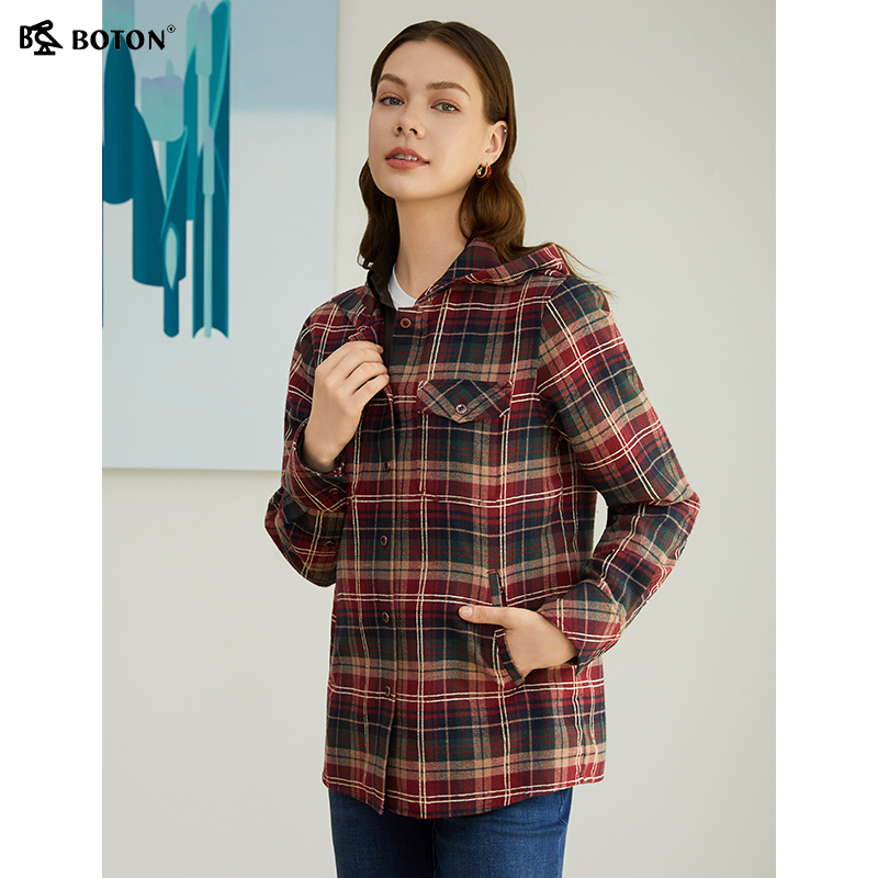 磨毛格子衬衫 翻领长袖 连帽外套通勤休闲衬衣百搭舒适 新款 波顿秋季