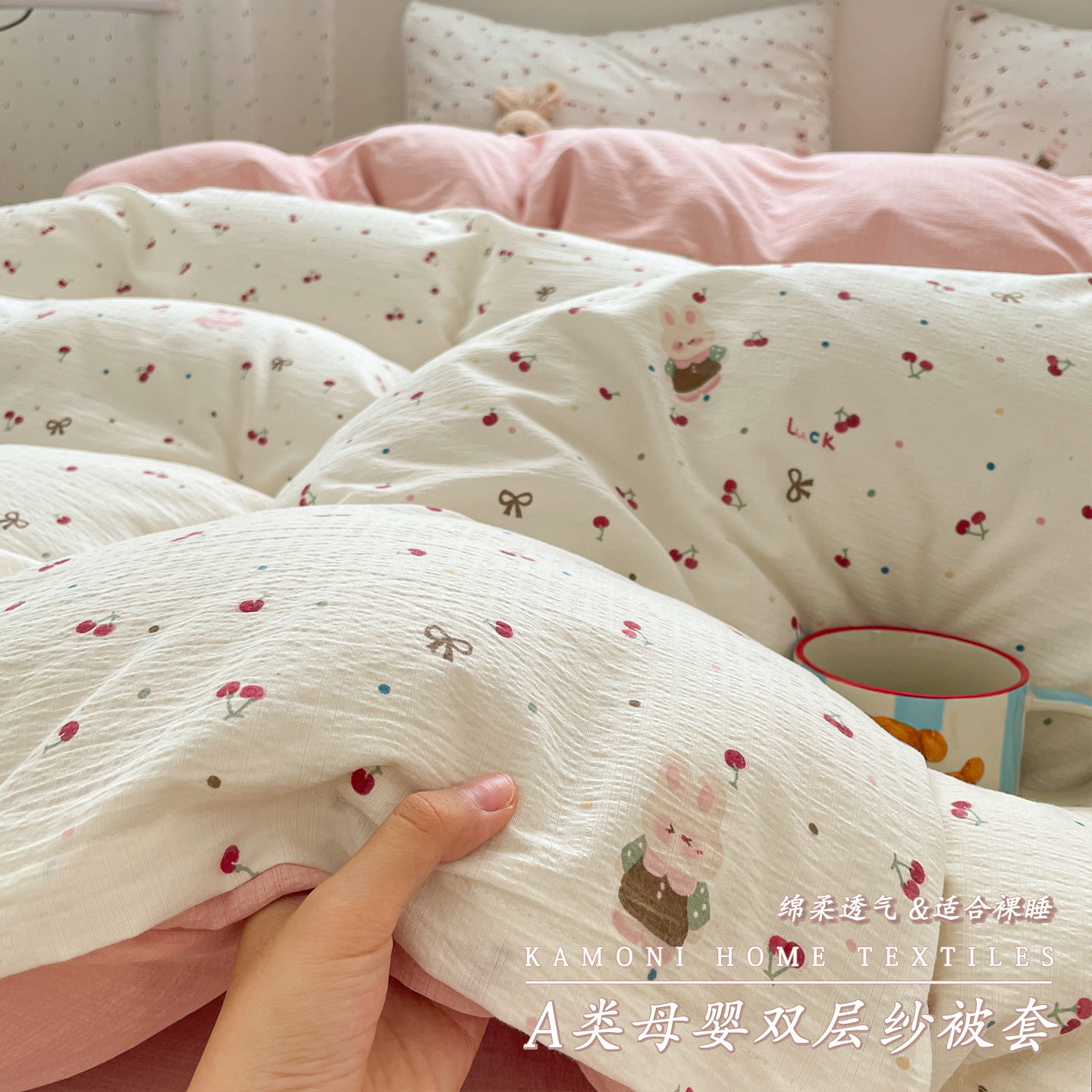 无印良品全棉床单学生宿舍纯棉卡通儿童被套秋冬三件套床上用品