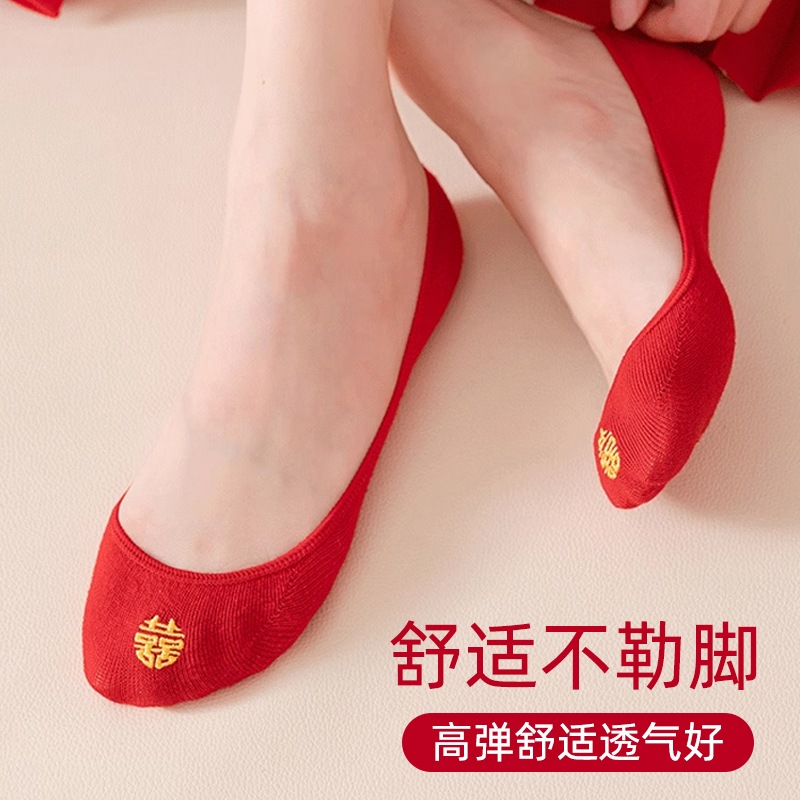 结婚内裤 内衣女士男生情侣一对纯红色棉袜子陪嫁用品 新娘新郎套装