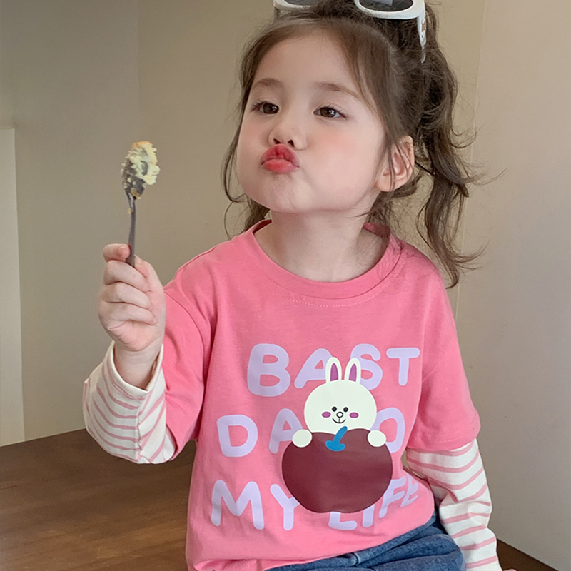 纯棉打底衫 女童t恤春秋2025新款 上衣女宝宝秋装 长袖 儿童洋气秋季