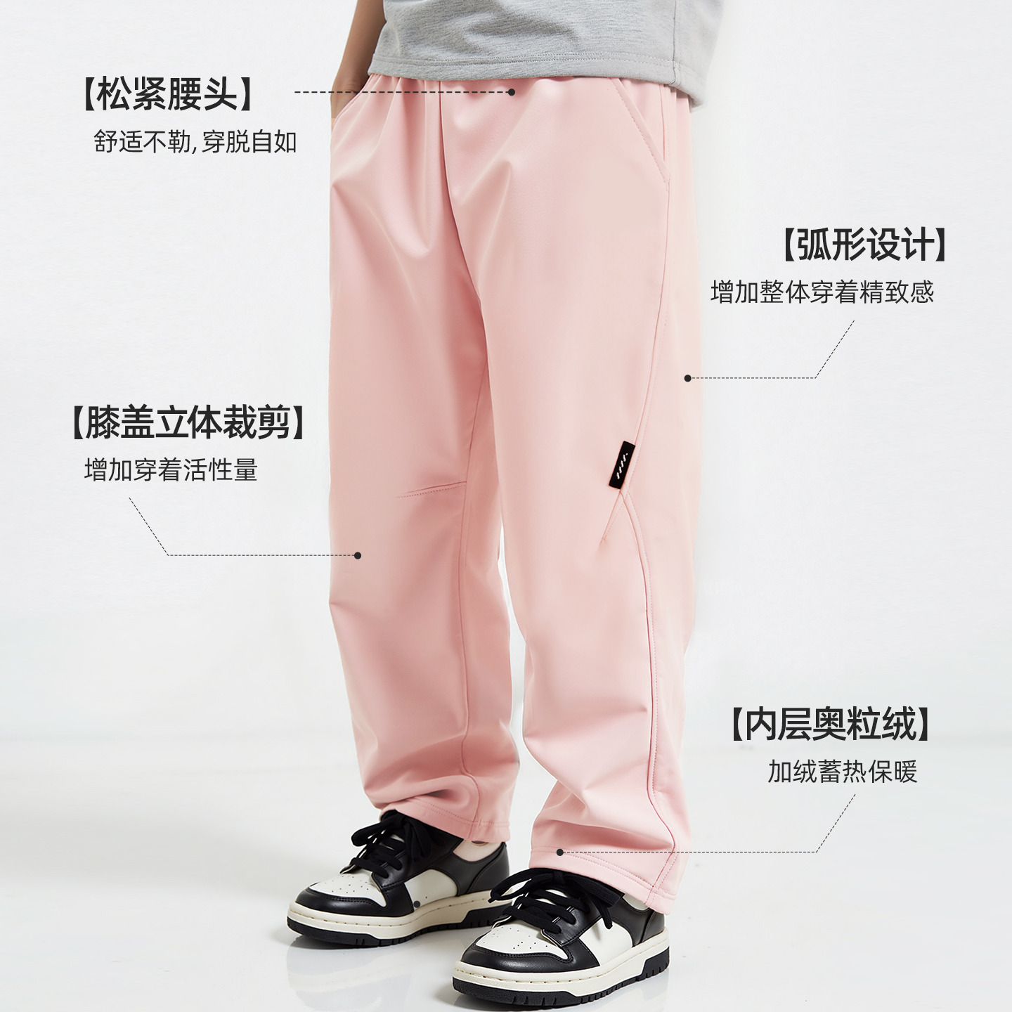 加绒街舞穿搭褶皱宽松休闲长裤 女秋冬季 子 灰色运动卫裤 自然涩美式