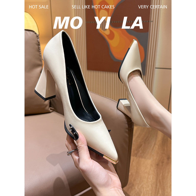新款 康莉春季 高跟单鞋 女方头真皮通勤时尚 子 方扣浅口鞋 博主推荐