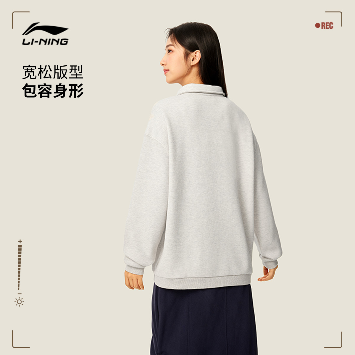 长袖 李宁网球卫衣女士2025新款 套头衫 女装 翻领上衣针织运动服 秋季