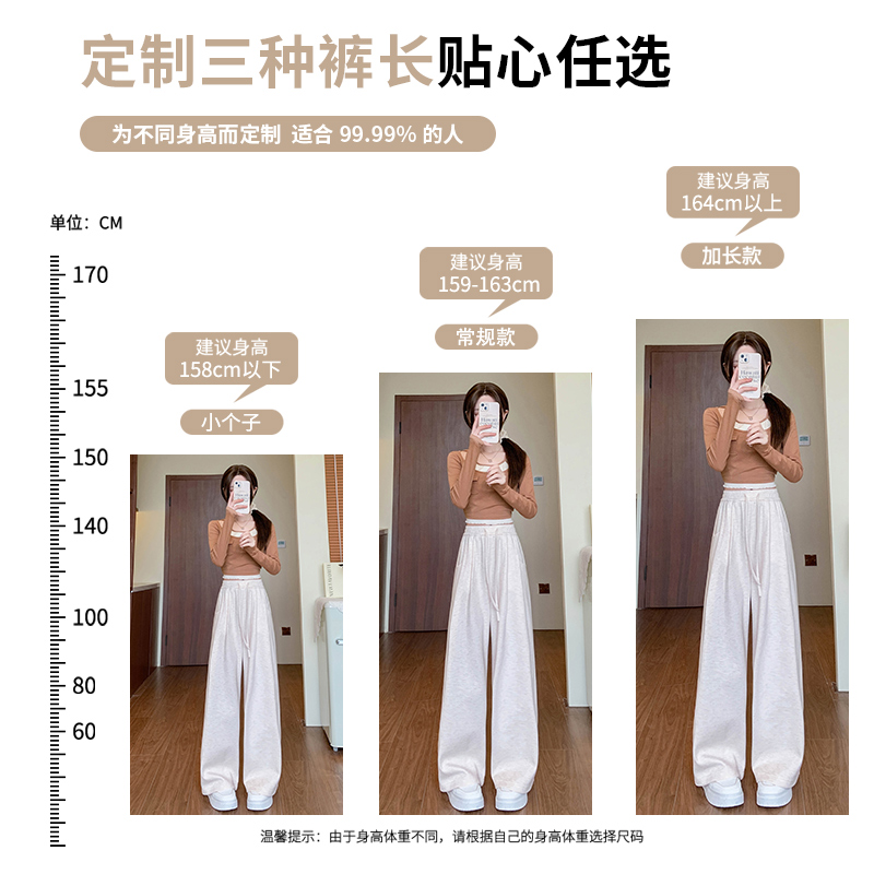 休闲显瘦卫裤 白灰色运动裤 高腰直筒宽松阔腿美式 春秋季 女2025新款