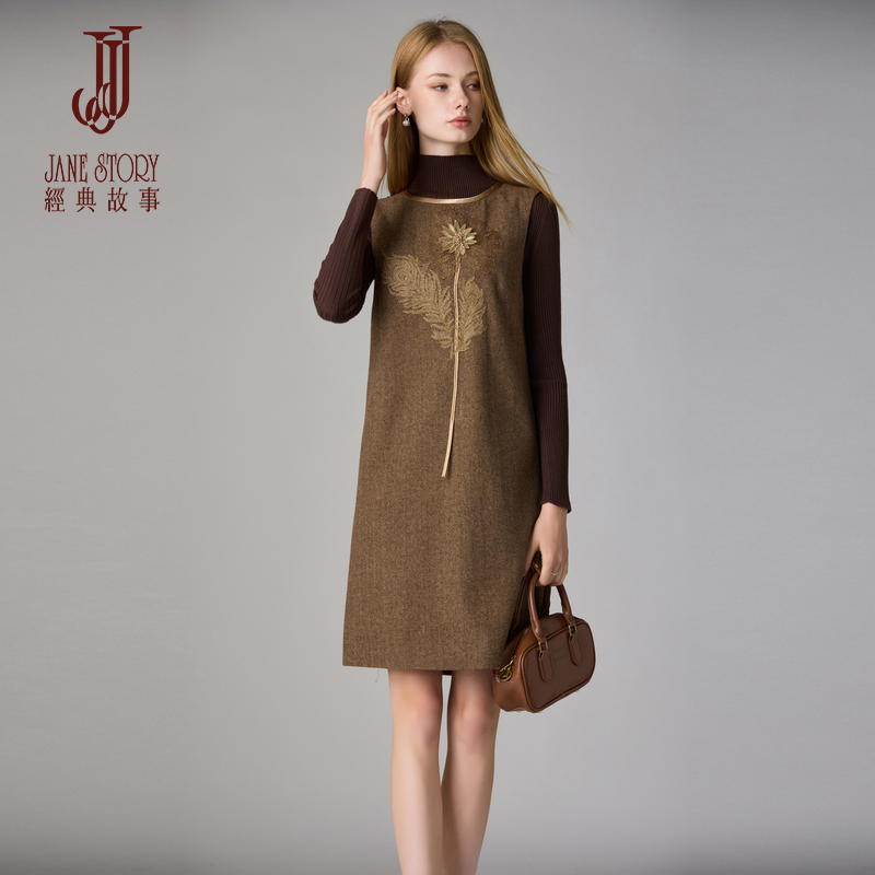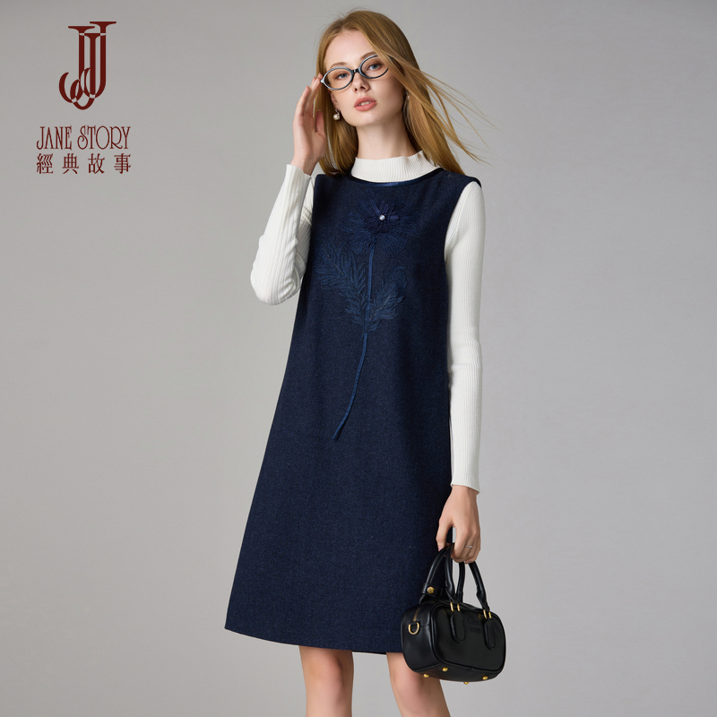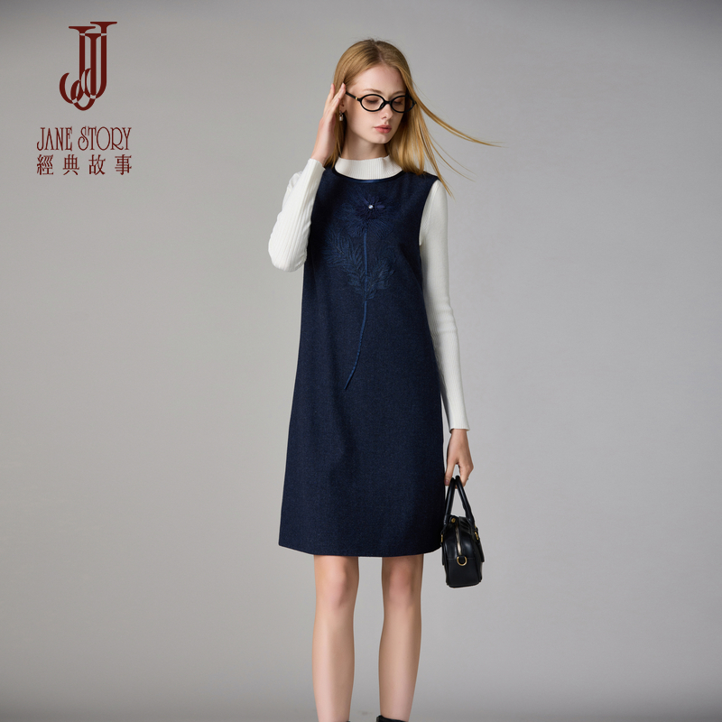 设计绣花中长款 新中式 时尚 新款 裙子 时髦黑色背心连衣裙女2025秋季