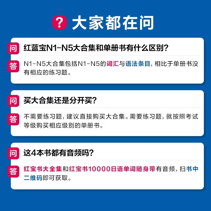 官方正版 N5文字词汇文法N4N3新日本语能力考试橙绿宝书标准自学教材真题单词语法红蓝宝书一千题1000题默写本 日语N2红蓝宝书NI