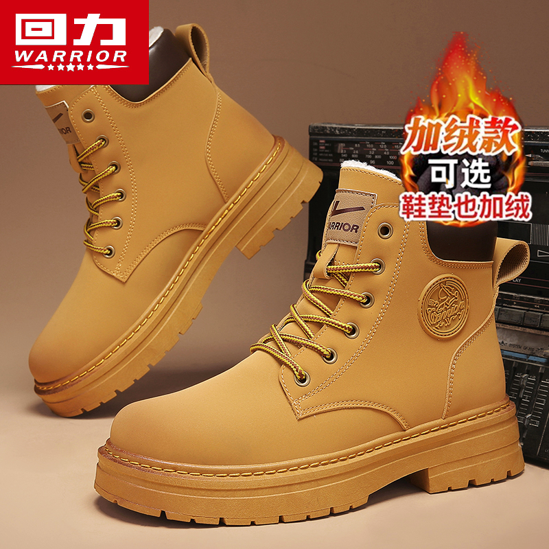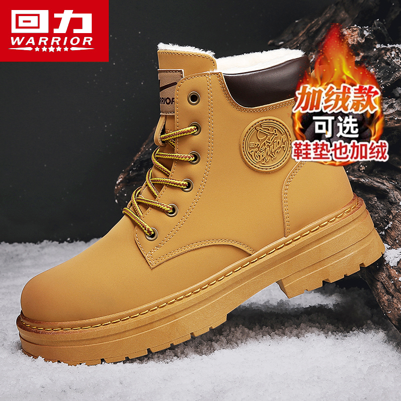 靴加厚高帮马丁靴子 户外防寒加绒保暖大黄工装 回力雪地靴男款 冬季