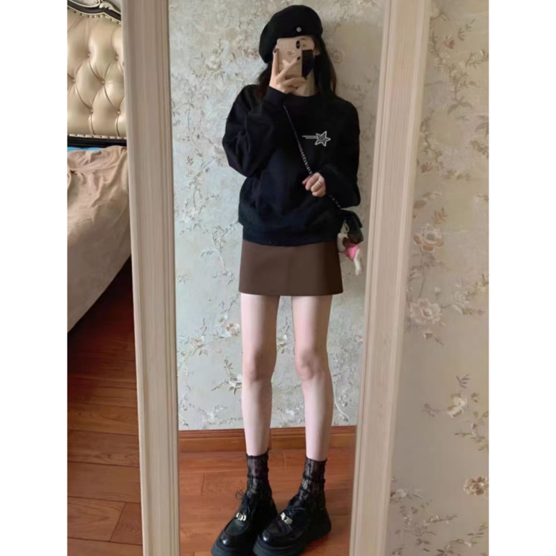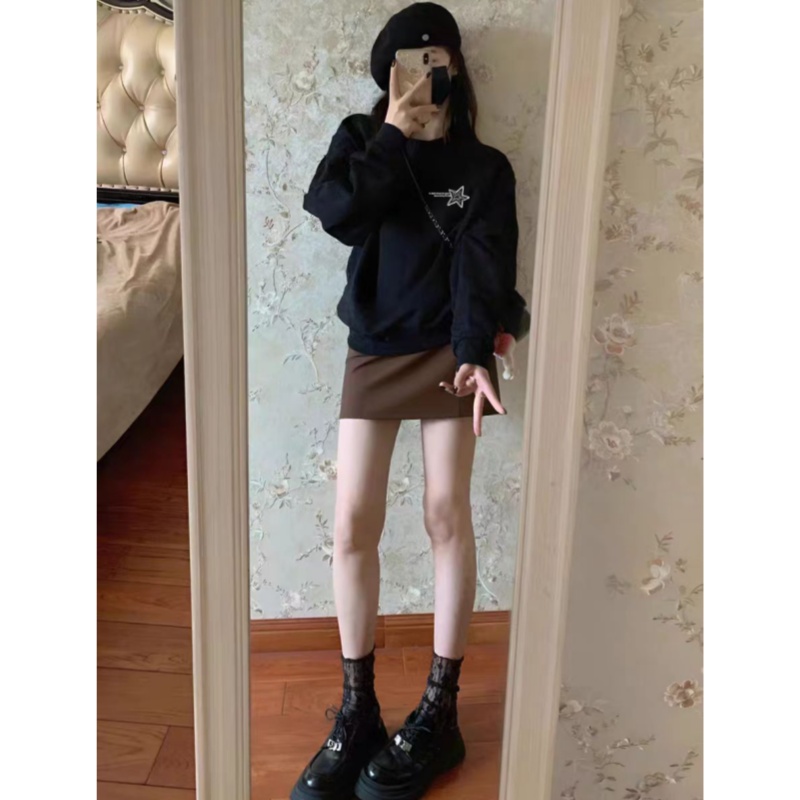 小个子秋冬加绒加厚女士上衣 圆领卫衣女2025新款 巨好看 黑色短款