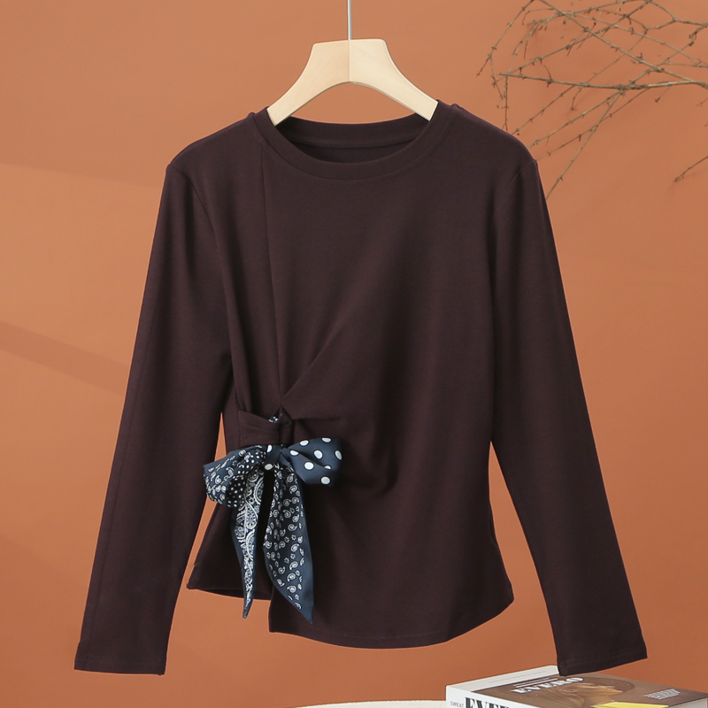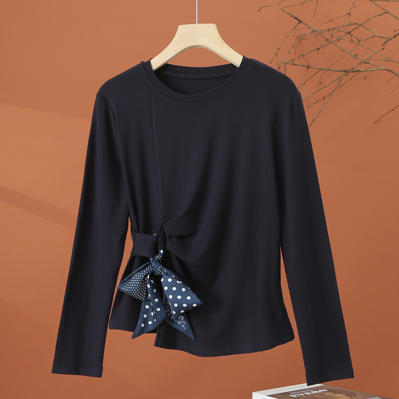 t恤女早秋2025新款 收腰显瘦短款 洋气小衫 秋季 上衣 时尚 不规则长袖