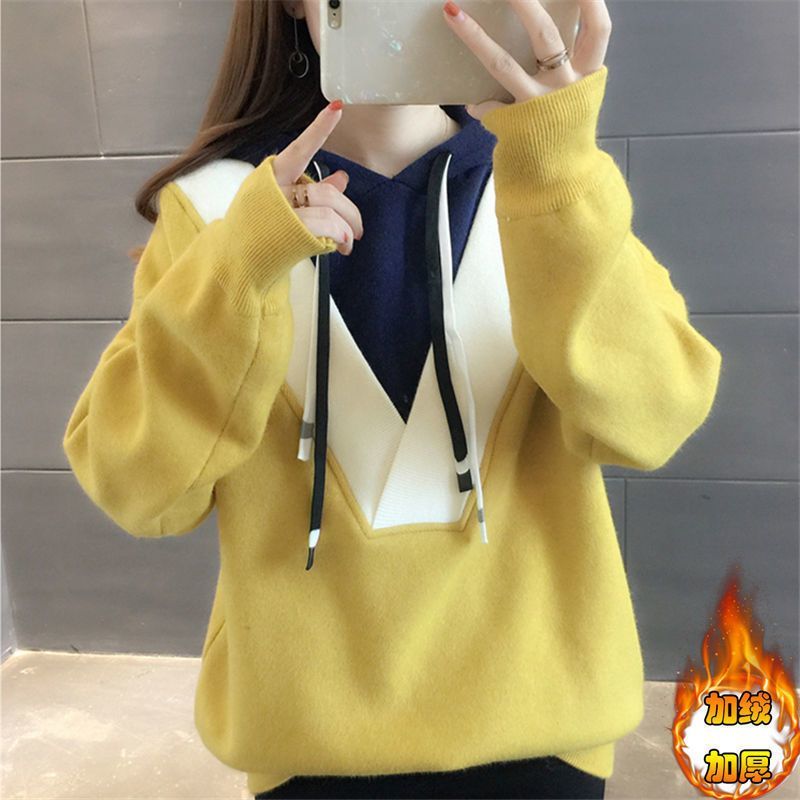 卫衣外套女 长袖 特大码 胖mm300斤宽松显瘦上衣女拼接加绒加厚修身