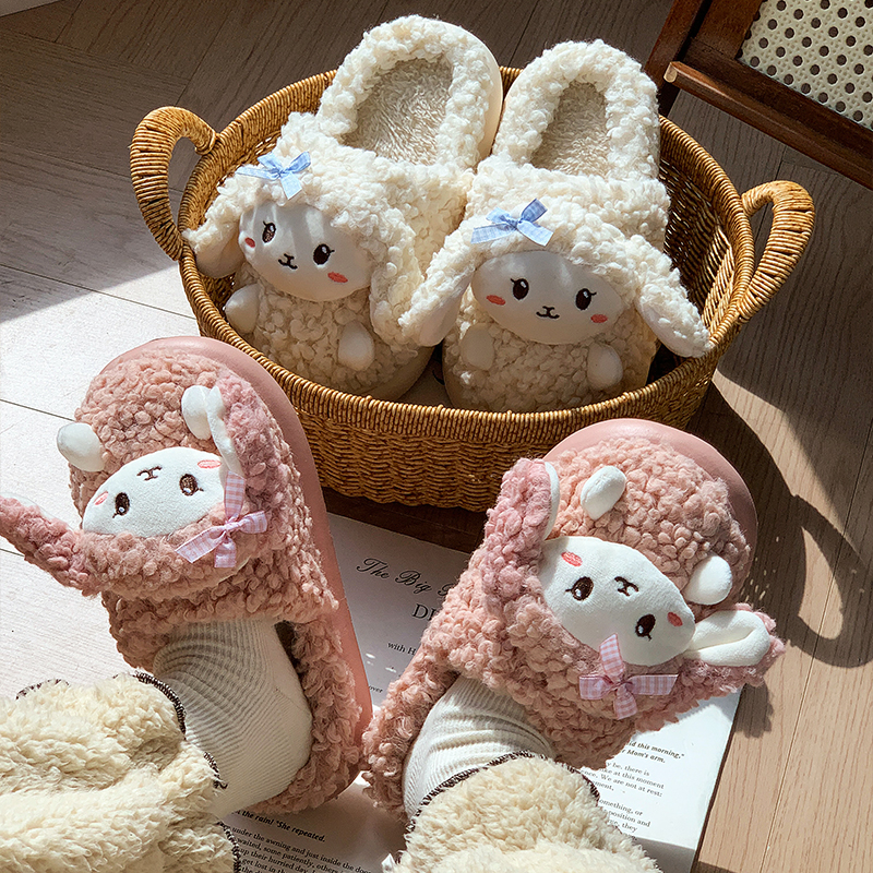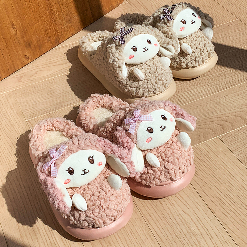 秋冬季 2025新款 室内家居保暖厚底棉拖 女款 毛毛加绒可爱小羊棉拖鞋
