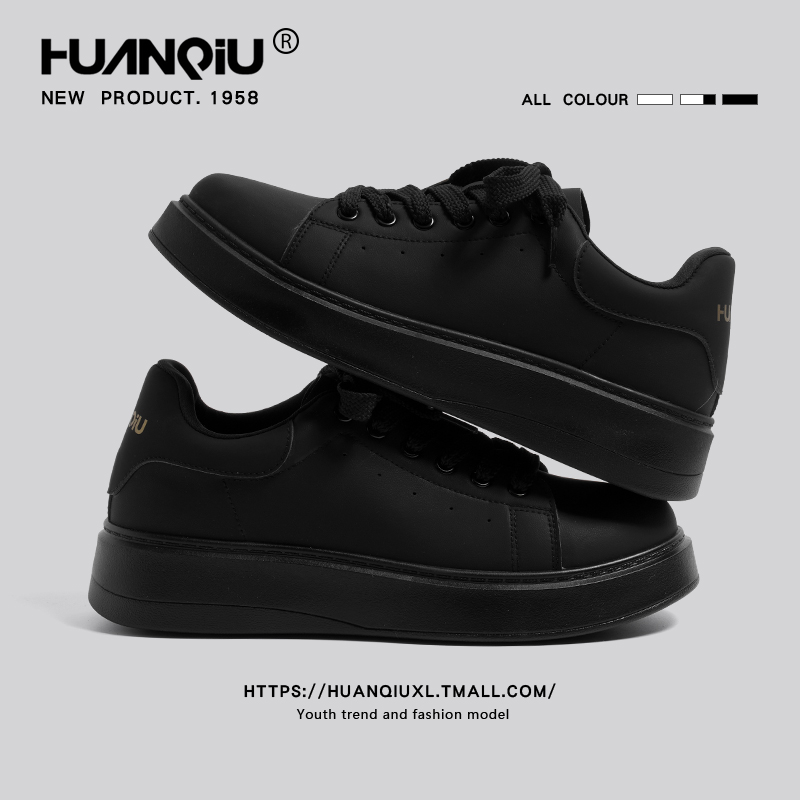 男2025新款 运动小黑鞋 秋季 子男鞋 潮流百搭休闲厚底鞋 环球黑色板鞋