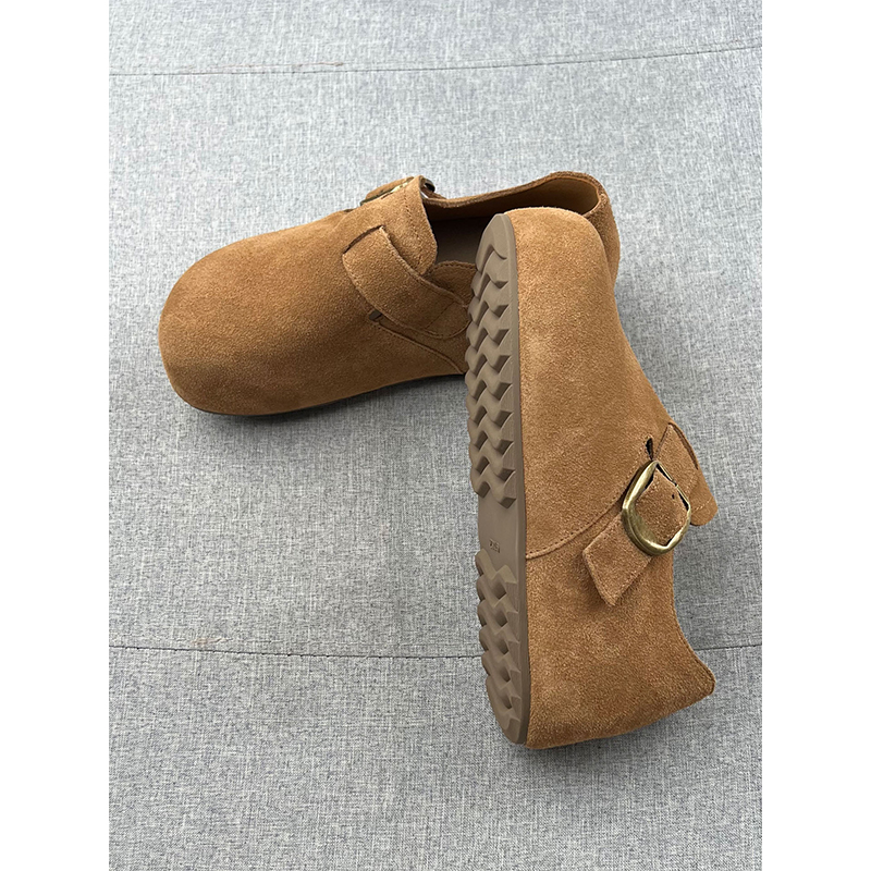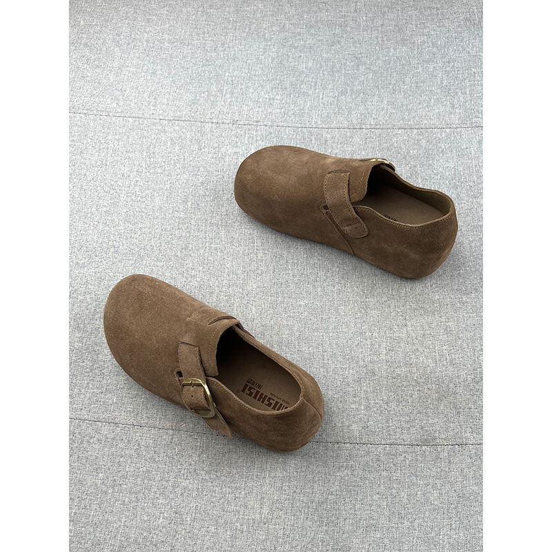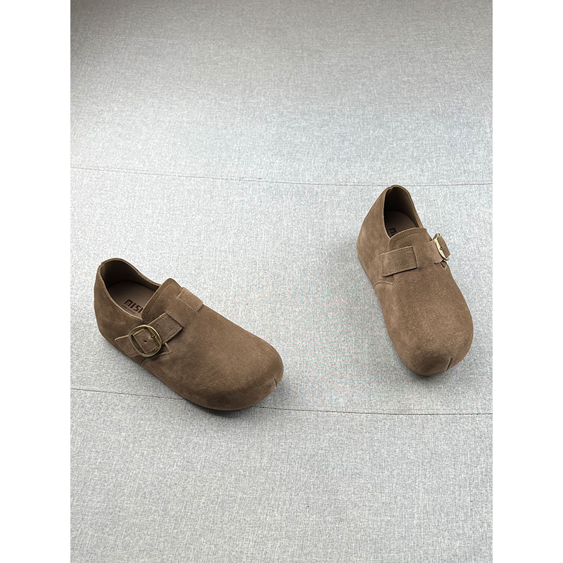 豆豆鞋 防滑休闲单鞋 女2025年秋新款 米家真皮搭扣内增高厚底勃肯鞋