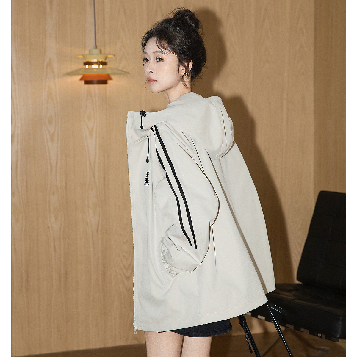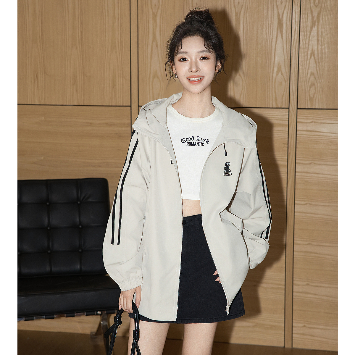 子织带插肩袖 唐狮2025春秋季 袖 外套女连帽短款 运动风户外穿搭 工装