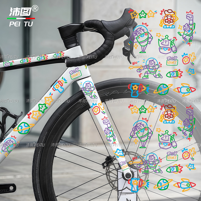 自行车下管贴纸山地公路自行车架巴斯光年卡通创意防水汽装 饰贴纸