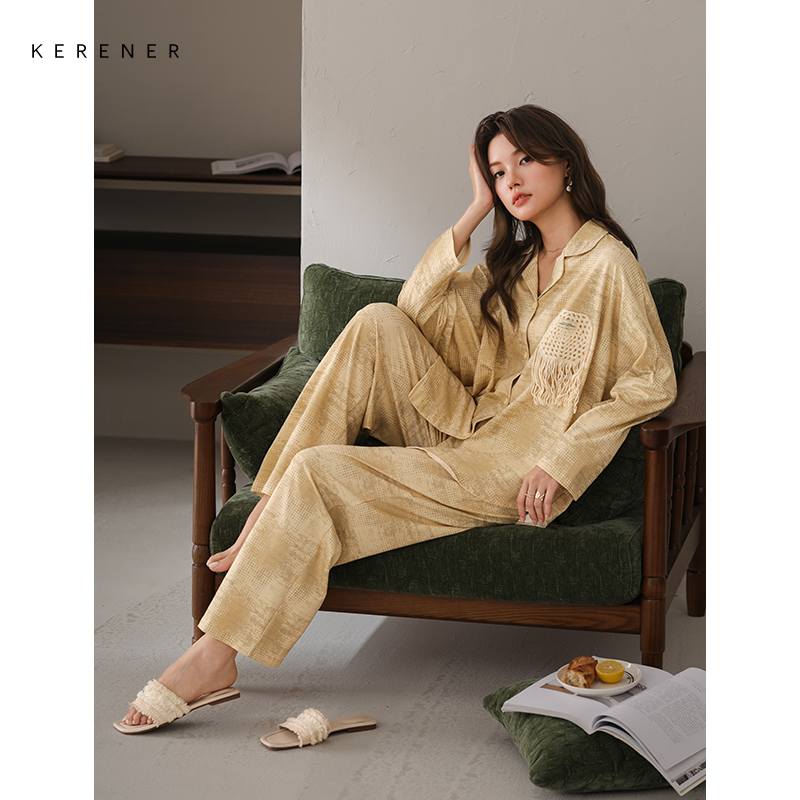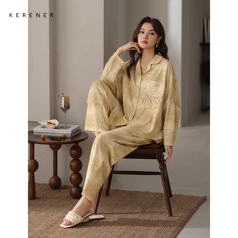 复古田园风可外穿家居服套装 妮狄娅睡衣女秋季 款 开衫 纯棉纱布长袖