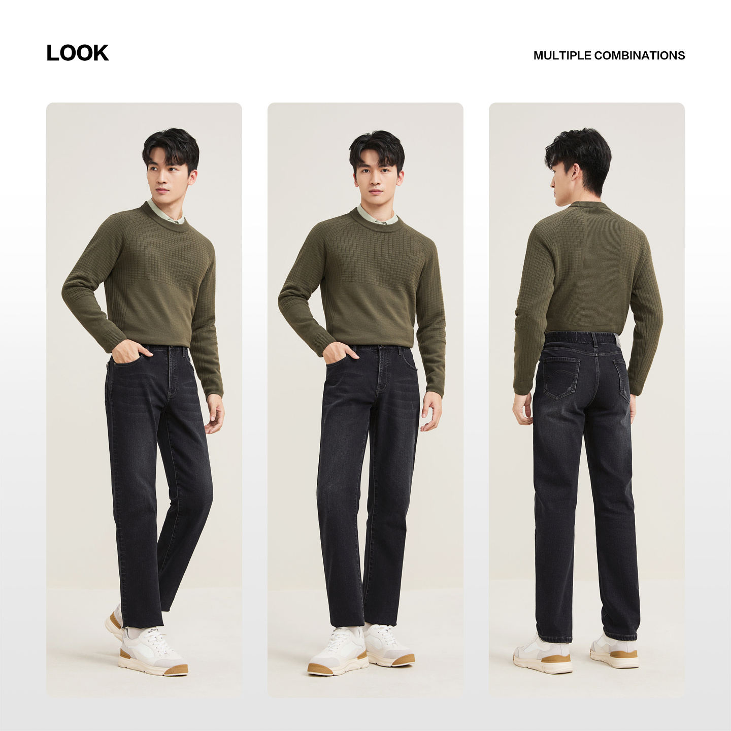 直筒长裤 HLA 新款 25秋冬季 子男 海澜之家山不在高水洗猫须黑牛仔裤