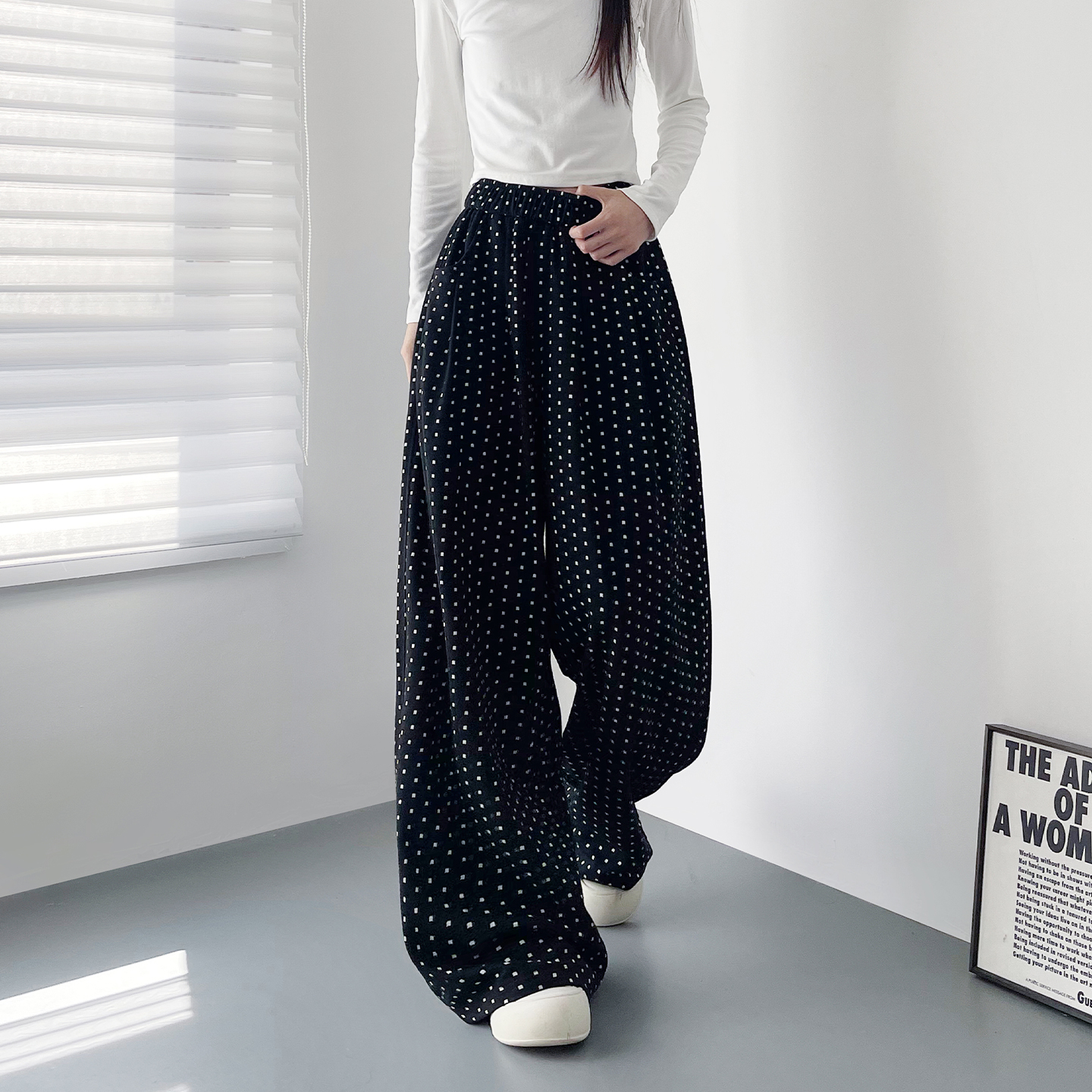 胖mm显瘦遮肉休闲长裤 高腰设计感波点印花阔腿裤 大码 新款 子 女秋季