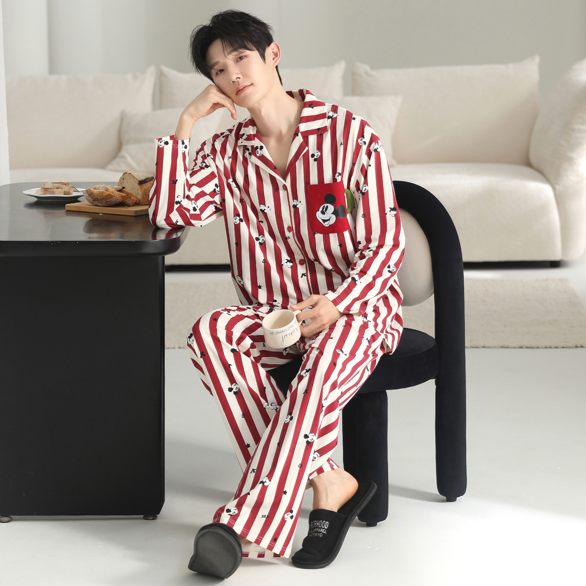 家居服套装 男士 青少年学生男孩大童2025年新款 纯棉长袖 睡衣春秋款