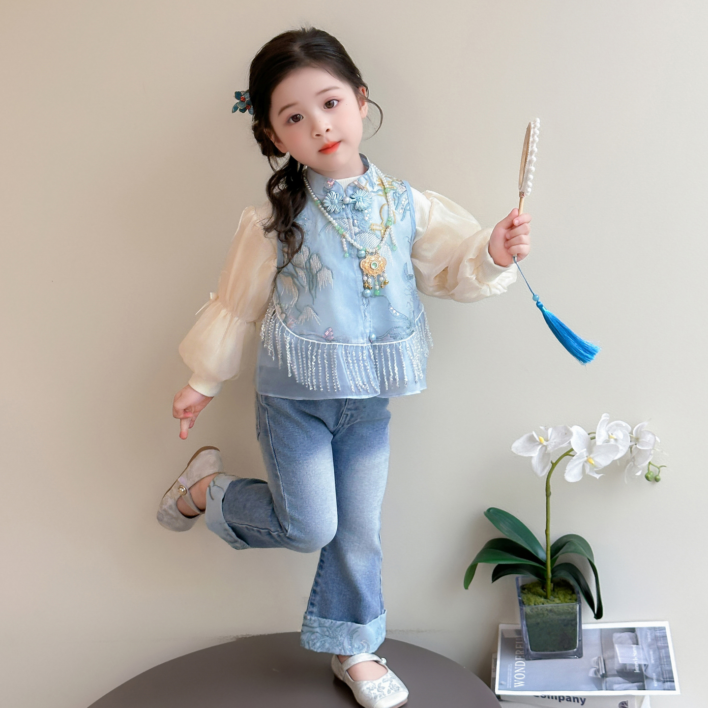 马甲刺绣套装 女童国风套装 两件套女宝中式 洋气时髦新中式 春秋新款