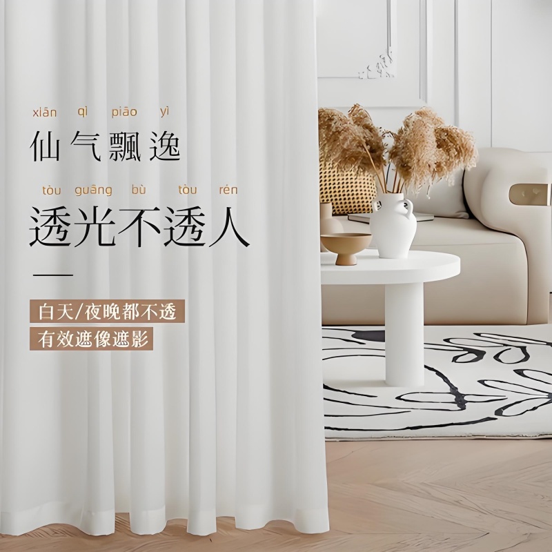 透光不透人加厚幻影纱窗帘窗纱阳台客厅卧室飘窗落地挂钩厨房遮阳